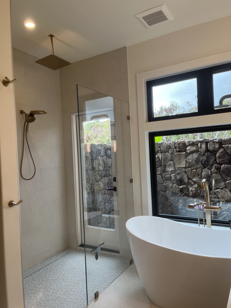 Master Bath with walk in shower, soaking tub and outdoor shower