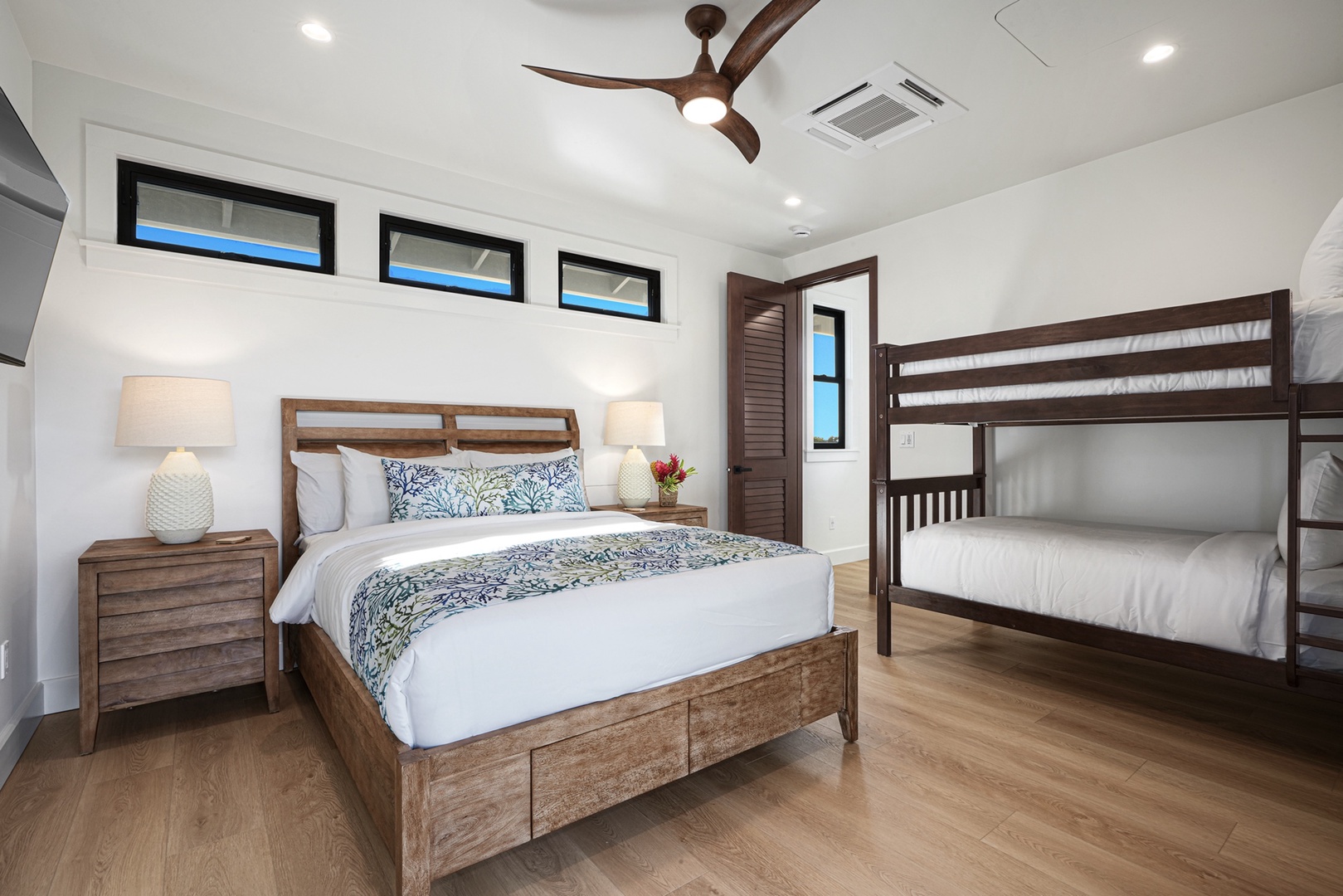 Second Upstairs Bedroom with Queen Bed and Twin Bunk Beds