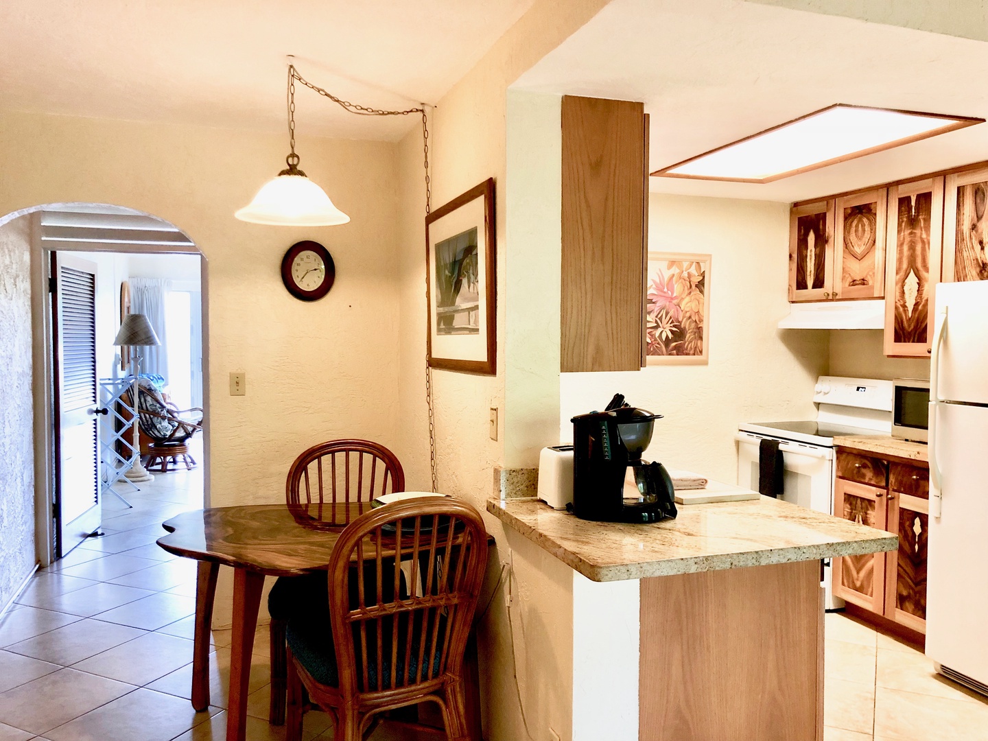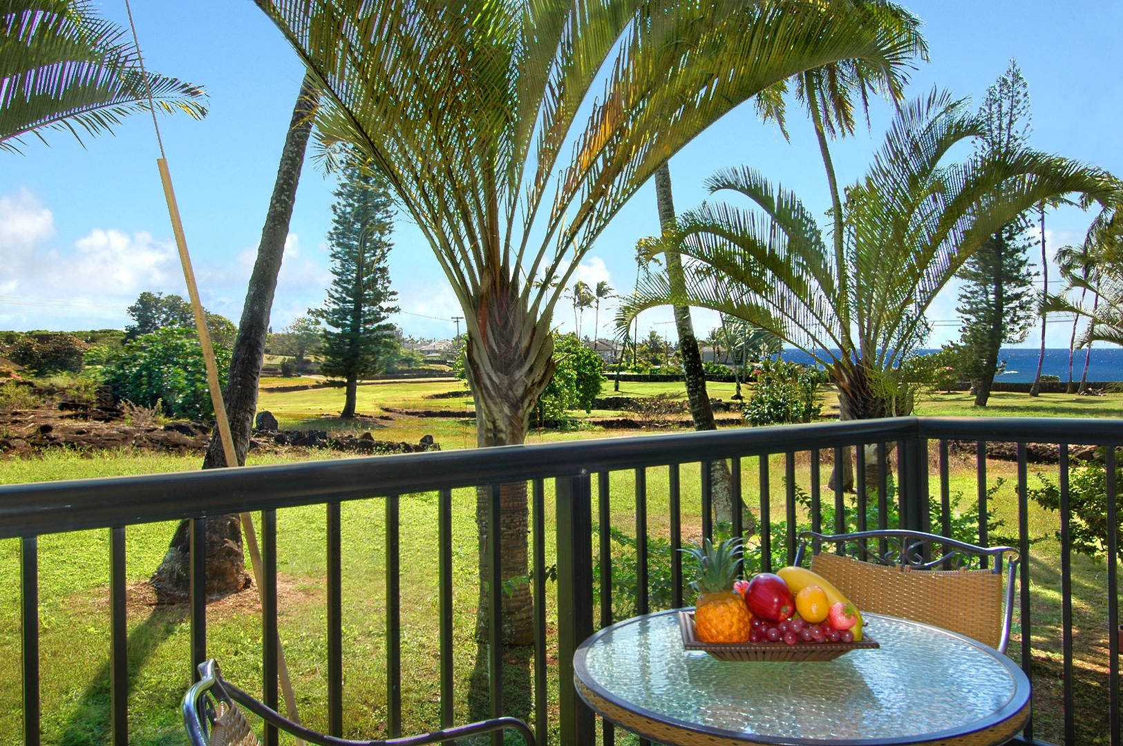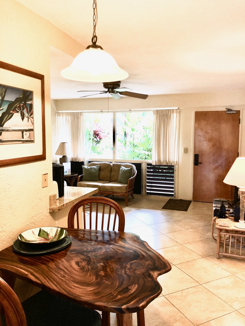 Kauaāi Prince Kuhio 114 is a gorgeous ground-level, one bedroom condo with ocean views, custom mahogany furniture and cabinetry. From your private lanai, enjoy the serene sounds of rolling ocean waves, tropical songbirds and palm fronds rustling in the trade winds. With direct access to a pool, the beach and town, all your paradise desires will be easily satisfied.