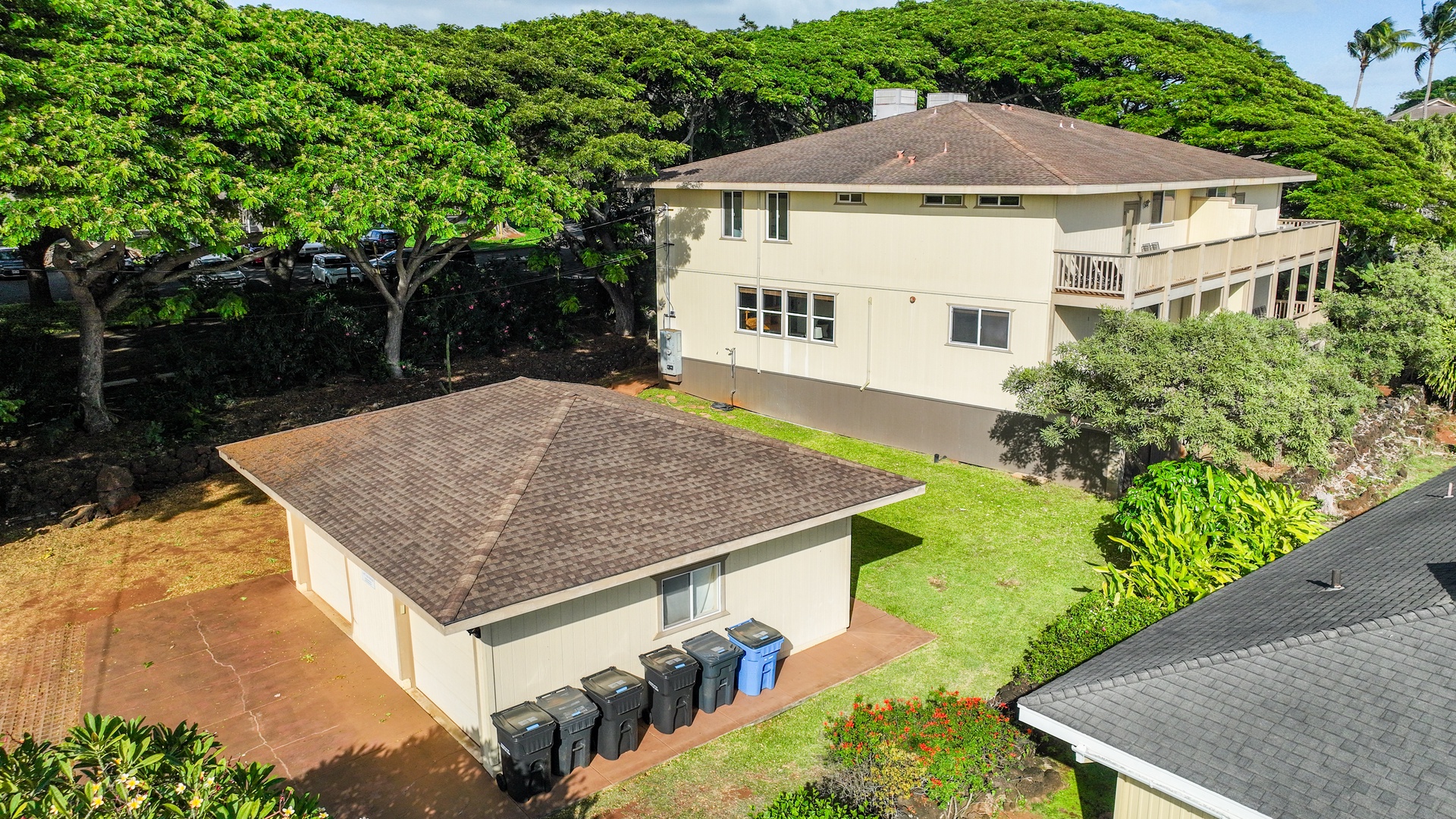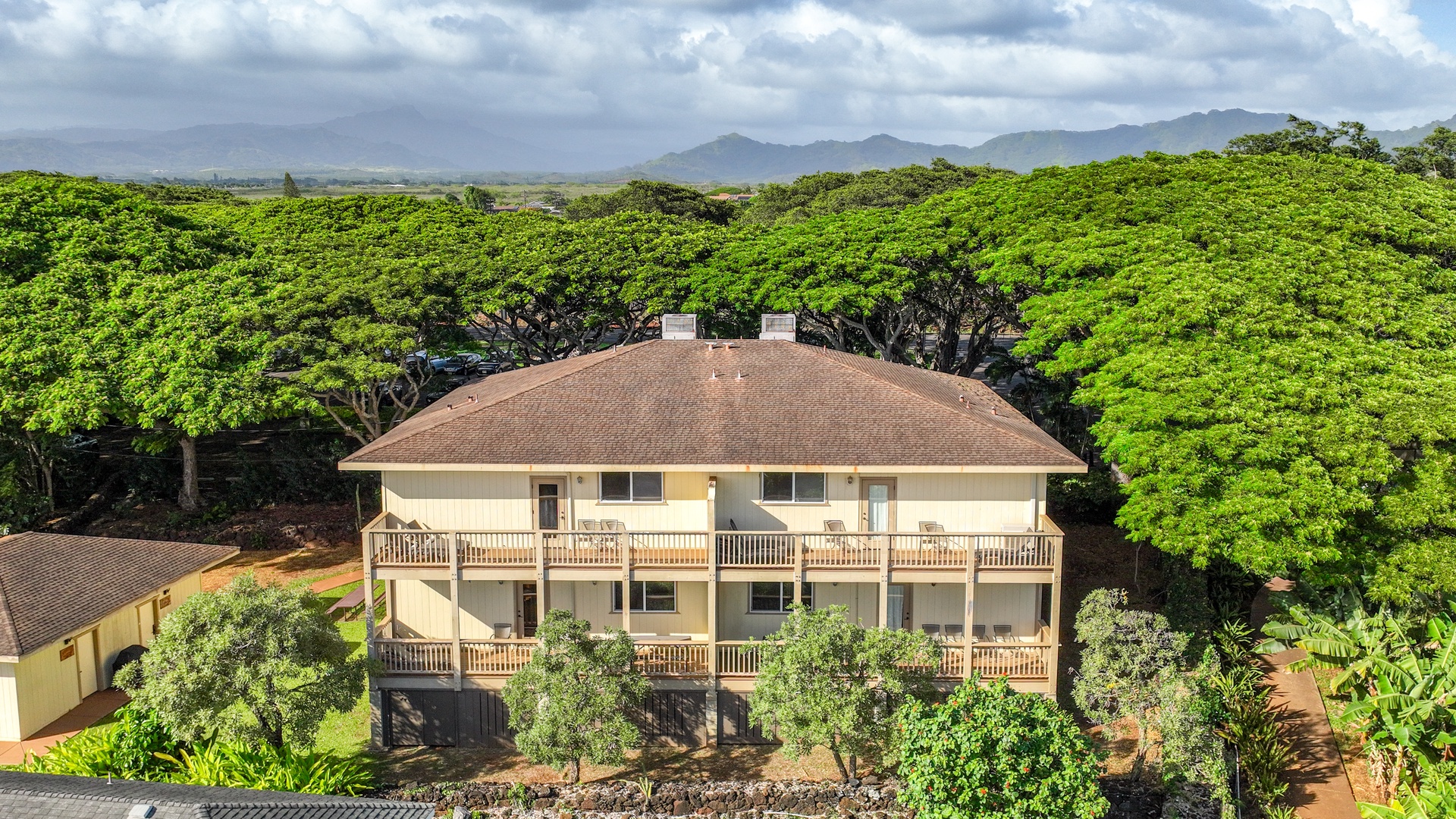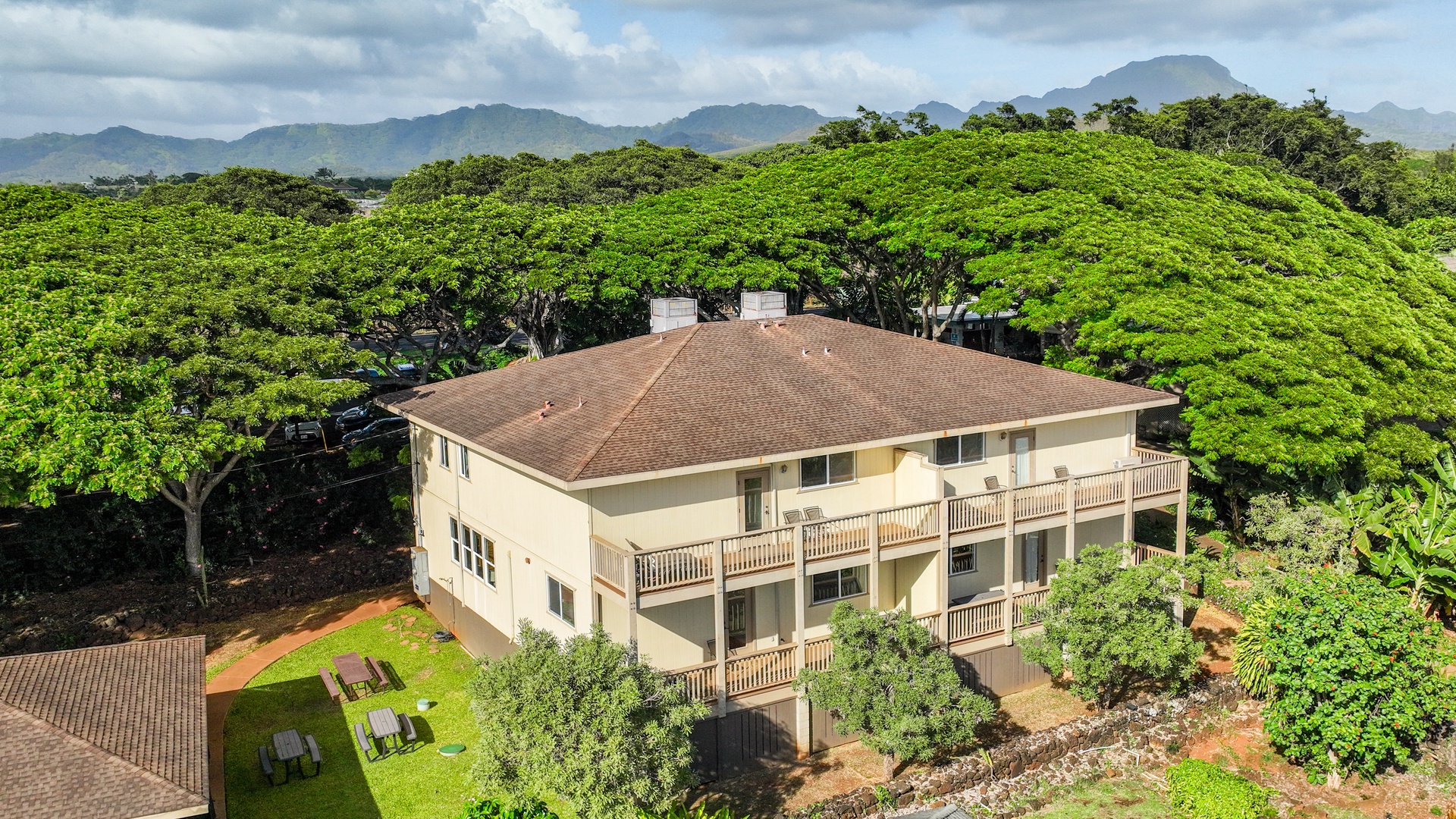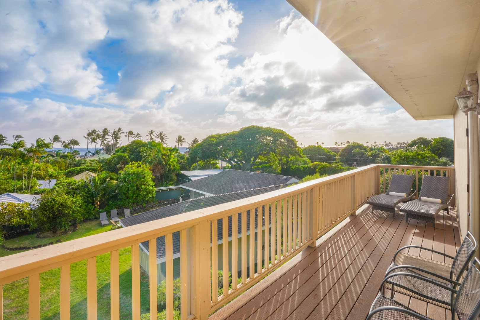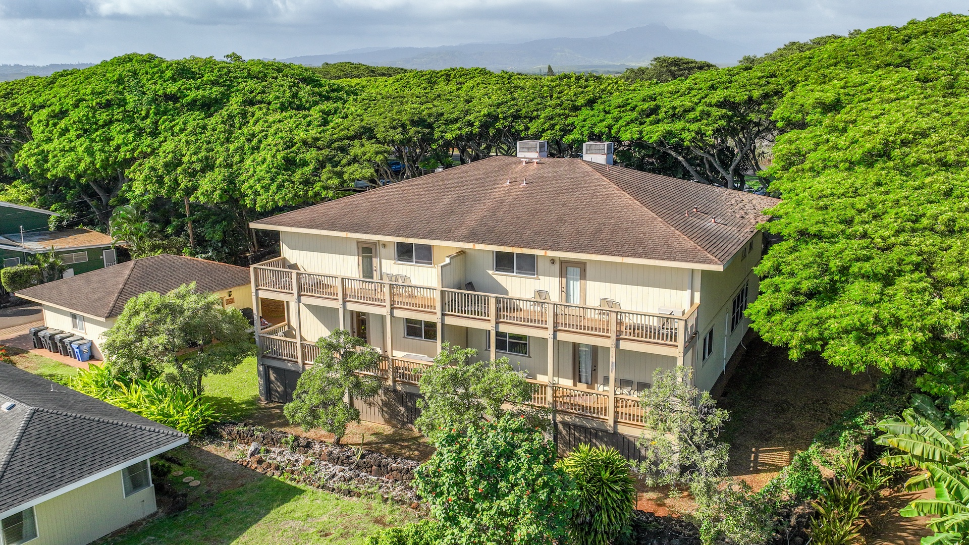 Enjoy the best of indoor–outdoor living: soak in panoramic ocean views from the upstairs lanai, unwind with lush garden views below, and savor the scent of plumeria drifting through the trade winds. A historic lava rock wall borders the property, shaded by 100-year-old Monkeypod trees and vibrant tropical foliage. Fire up the BBQ in the expansive yard and take advantage of special access to the Poipu Beach Athletic Club, offering resort-style amenities just minutes away.