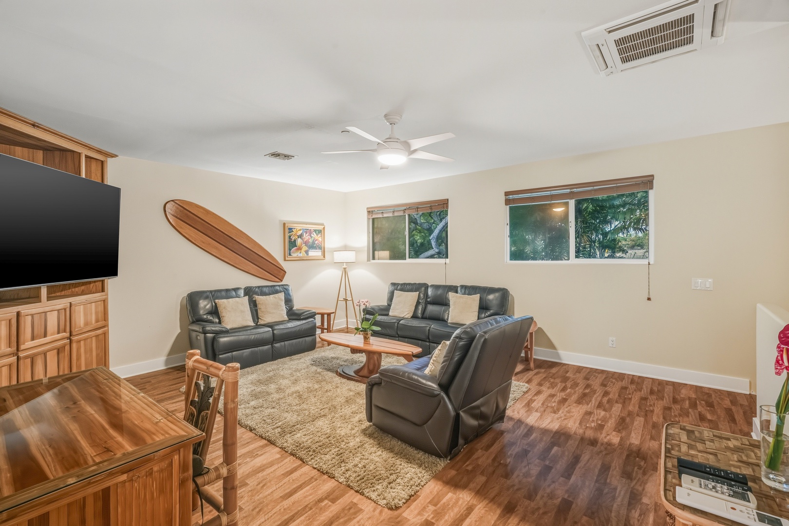 Relax upstairs with island breezes and big-screen fun