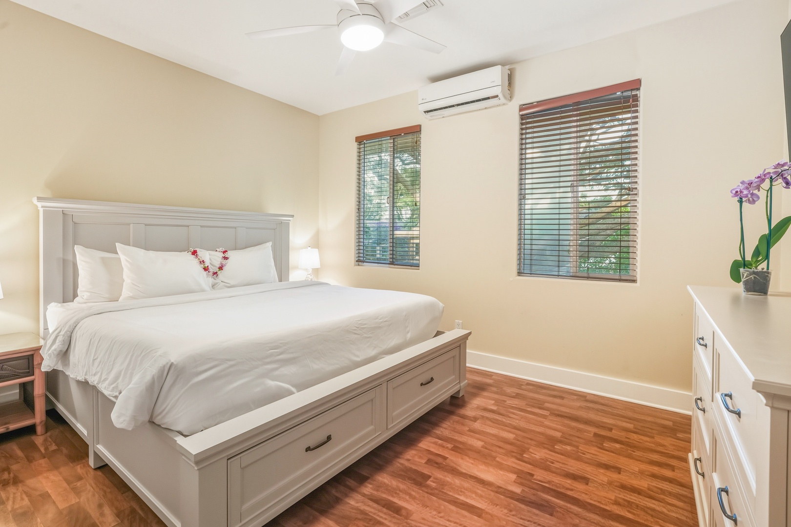 Just steps from the shoreline, this spacious plantation-style beach suite offers an unforgettable retreat for families, friends, and loved ones. With room to comfortably accommodate up to thirteen guests, this air-conditioned, island-inspired home combines generous space with warm aloha charm—making it the perfect gathering place for your Kaua‘i vacation.