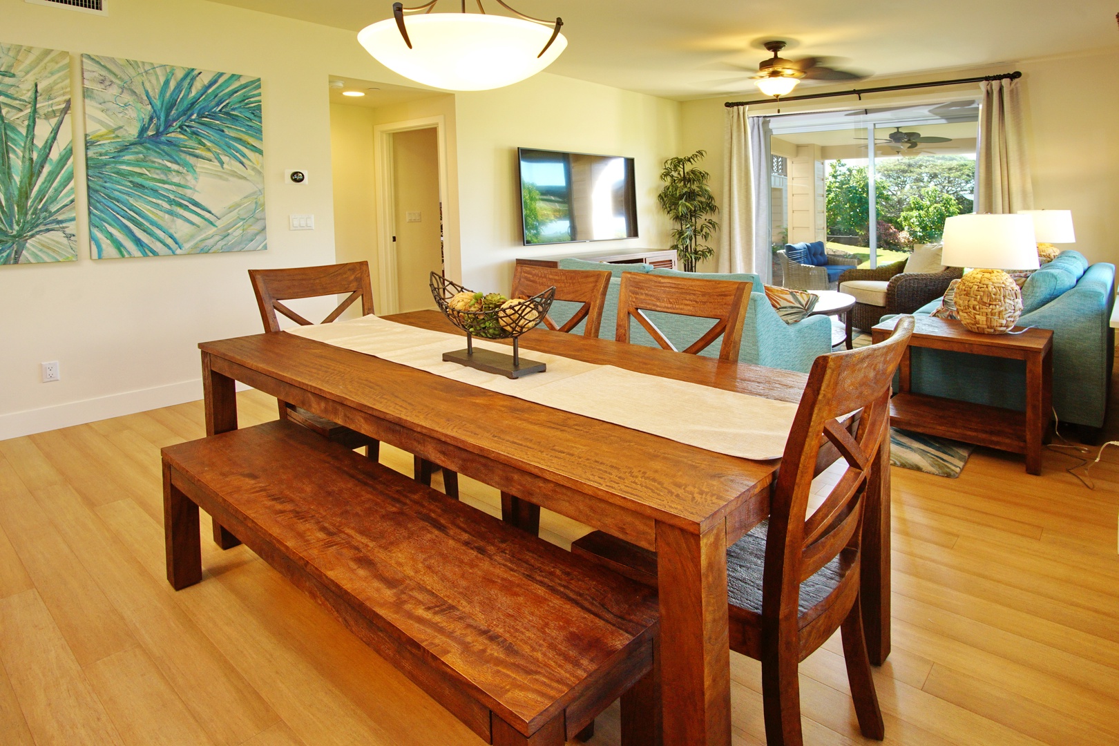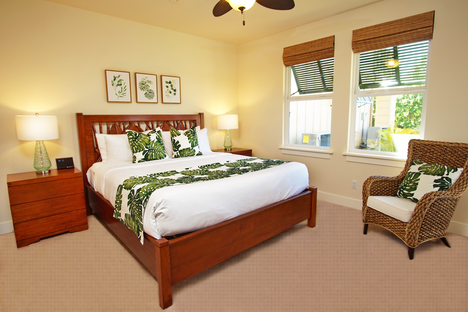 Pili Mai 13M is a 3-bedroom, single level suite on the first floor with plantation-style architecture. Newly furnished and decked with bamboo floors, Koa cabinets, a gourmet kitchen and central A/C, this villa is a fresh find. Revel in all the bells and whistles of a new tropical vacation rental, with private access to one of Kauai’s most challenging and experiential golf courses.