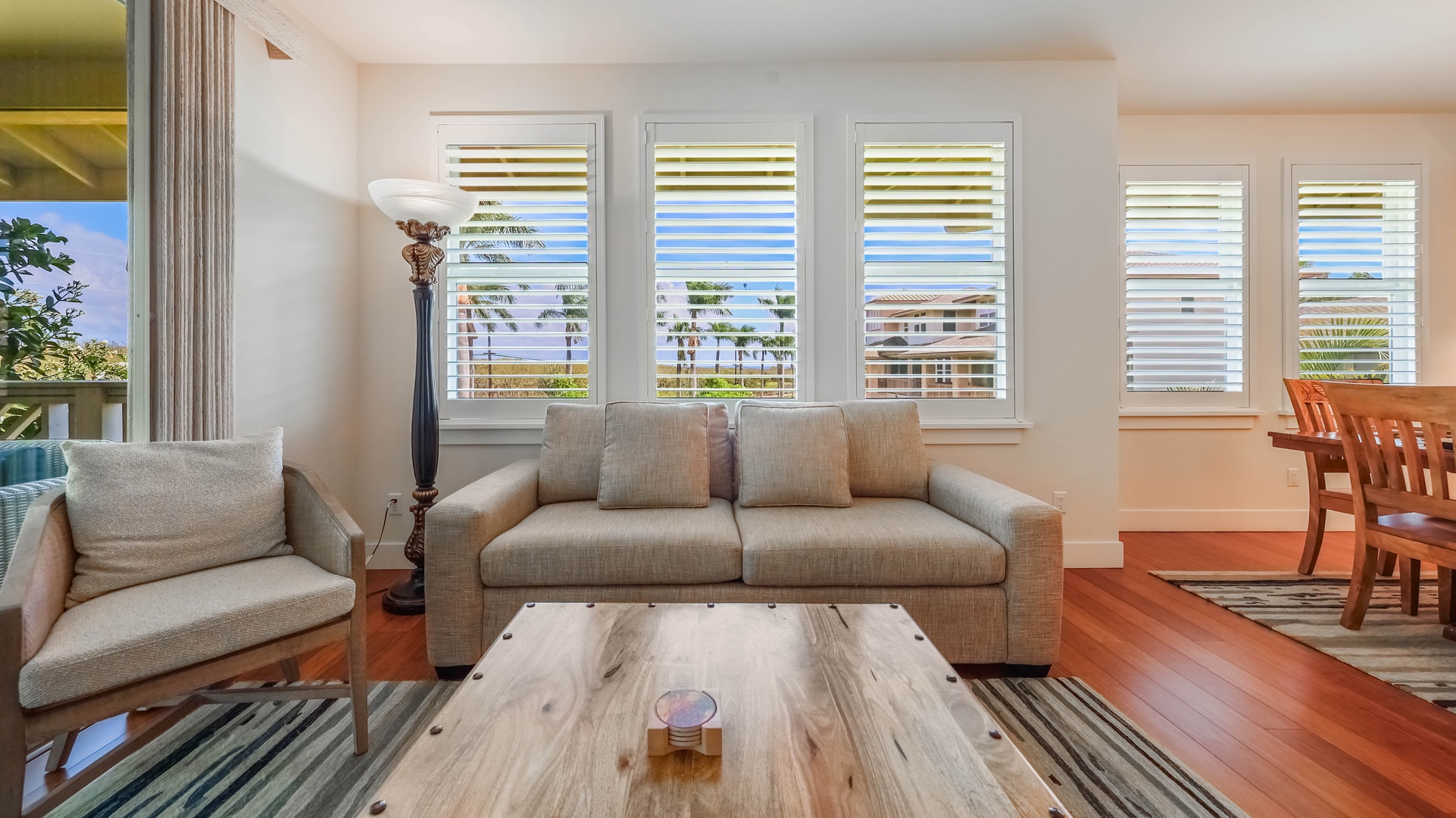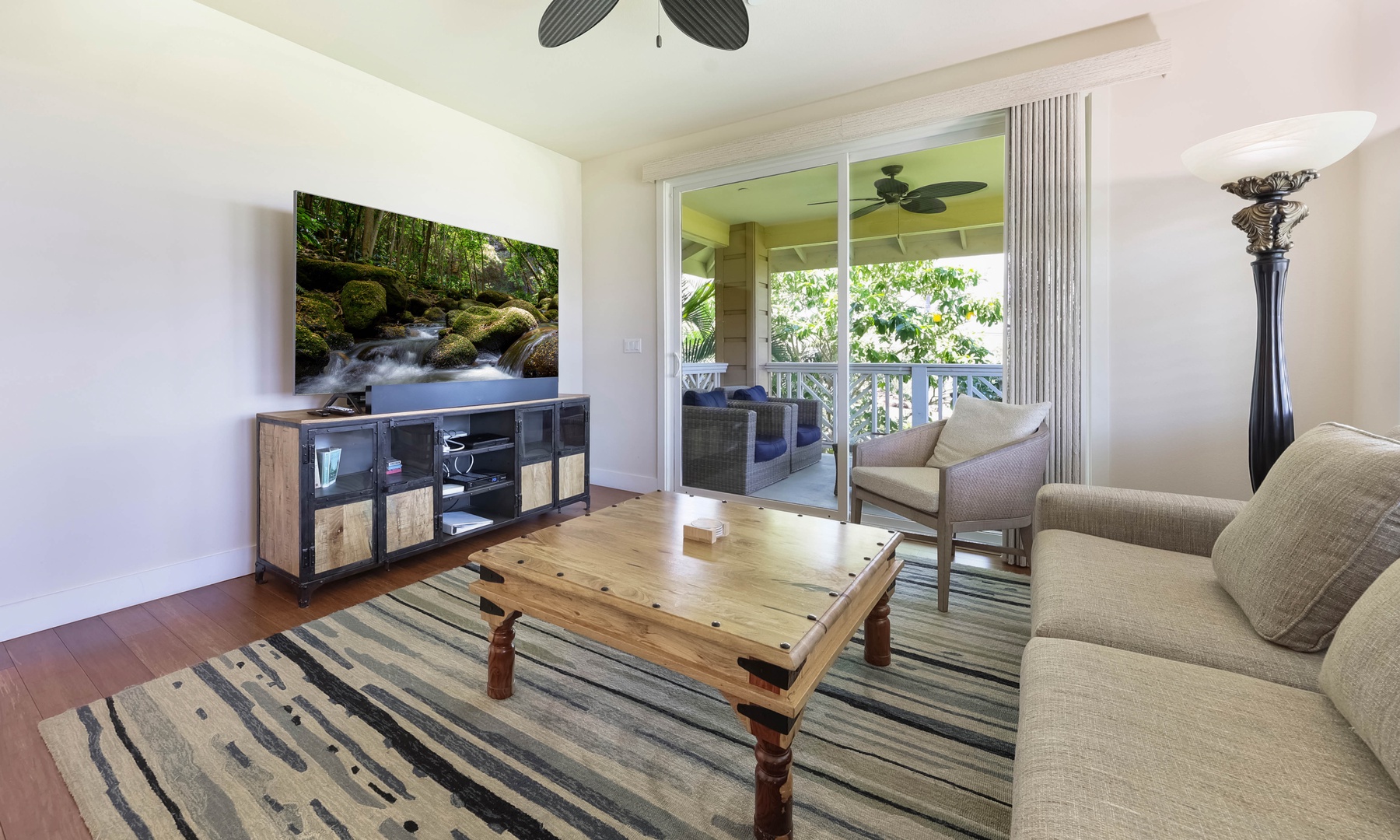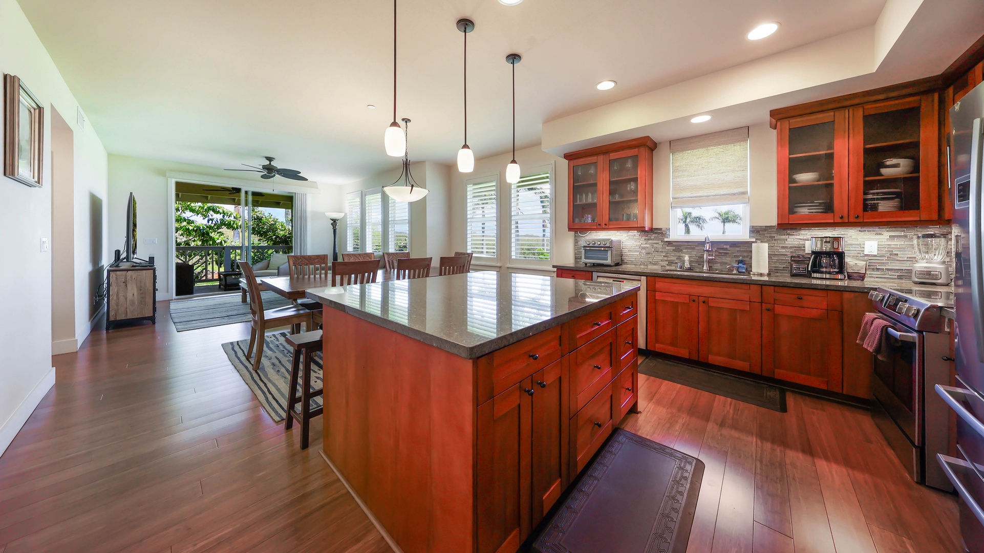 Pili Mai 3L is a three-bedroom, single level suite on the second floor with plantation-style architecture. and over 1,200 square feet of living space. Newly furnished and decked with bamboo floors, Koa cabinets, a gourmet kitchen and central A/C, this villa is a fresh find. Revel in an attached one-car garage, mountain view balcony and all the bells and whistles of a brand-new tropical vacation rental. With private access to one of Kauai’s most challenging and experiential golf courses, Pili Mai 3L is the perfect home away from home while vacationing on Kaua’i.