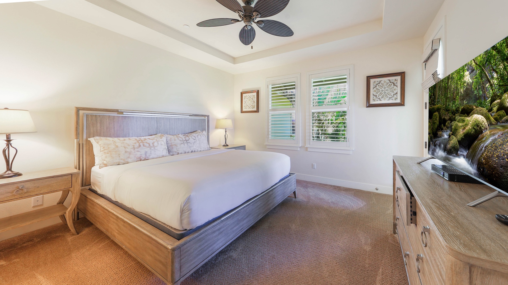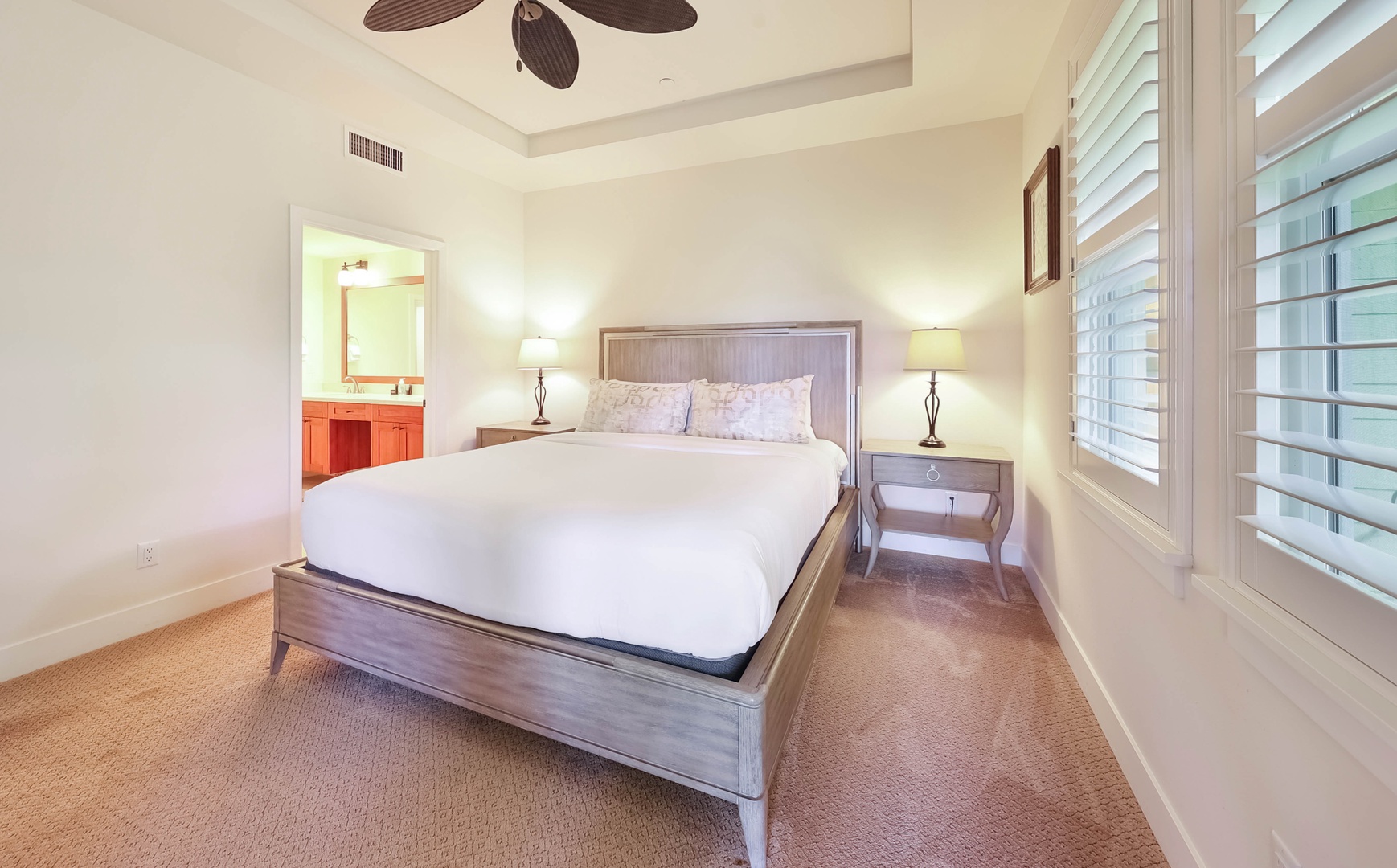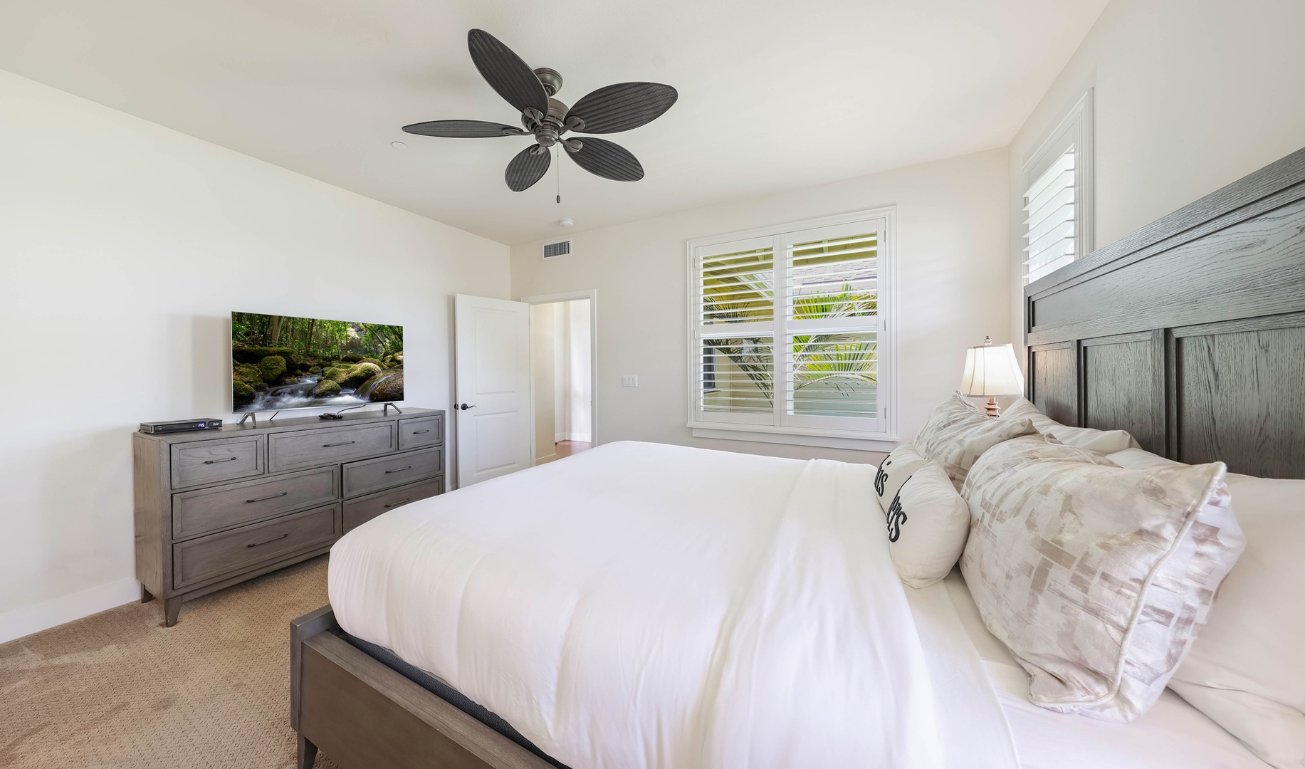 Pili Mai 3L is a three-bedroom, single level suite on the second floor with plantation-style architecture. and over 1,200 square feet of living space. Newly furnished and decked with bamboo floors, Koa cabinets, a gourmet kitchen and central A/C, this villa is a fresh find. Revel in an attached one-car garage, mountain view balcony and all the bells and whistles of a brand-new tropical vacation rental. With private access to one of Kauai’s most challenging and experiential golf courses, Pili Mai 3L is the perfect home away from home while vacationing on Kaua’i.