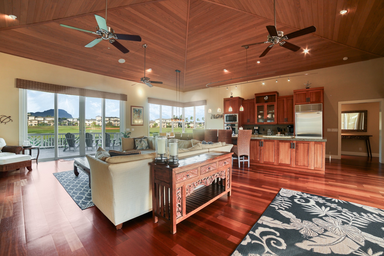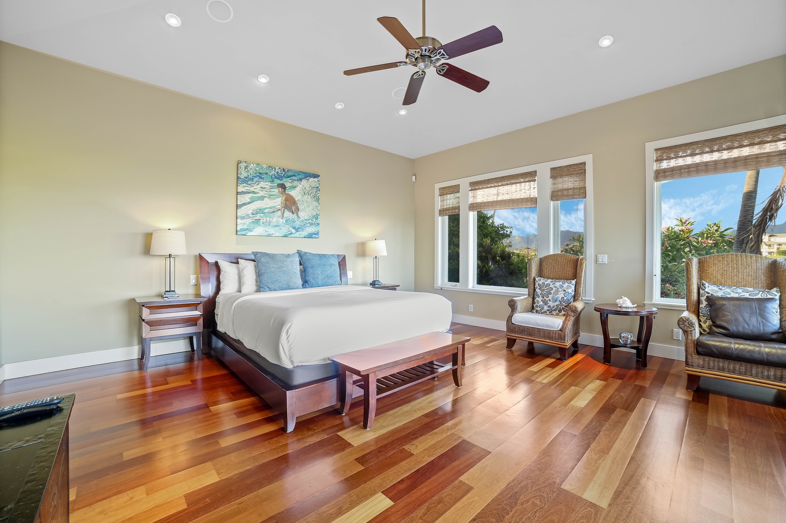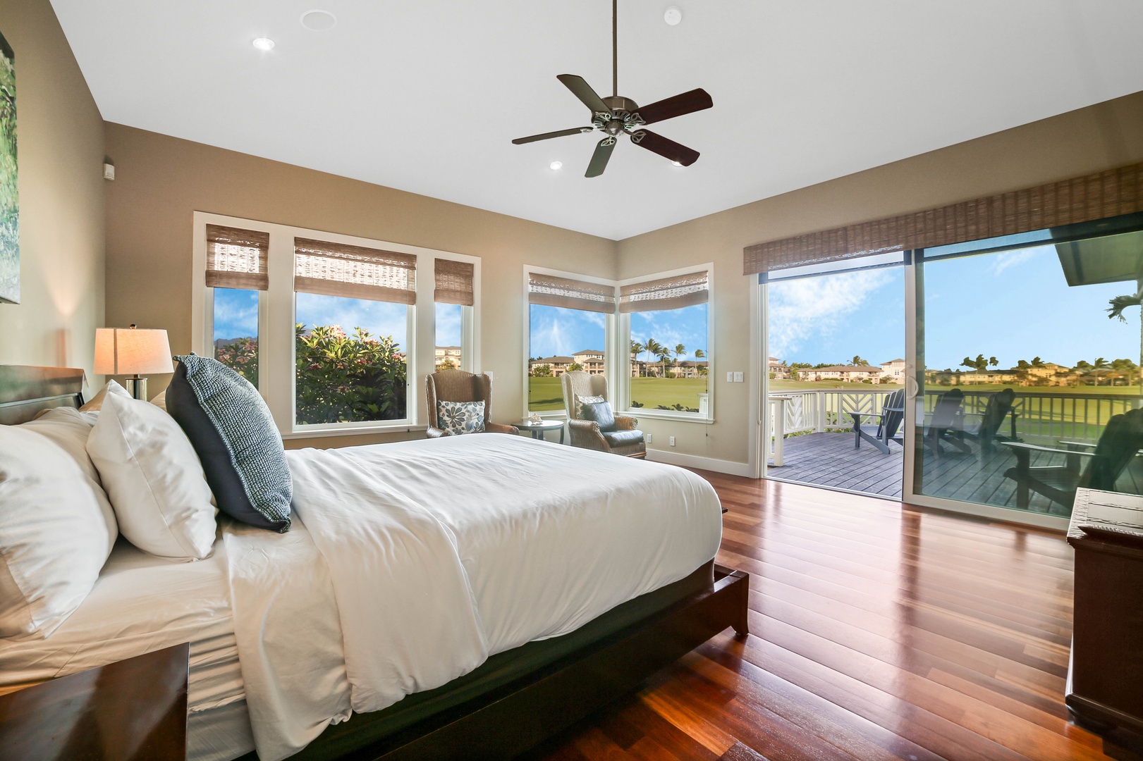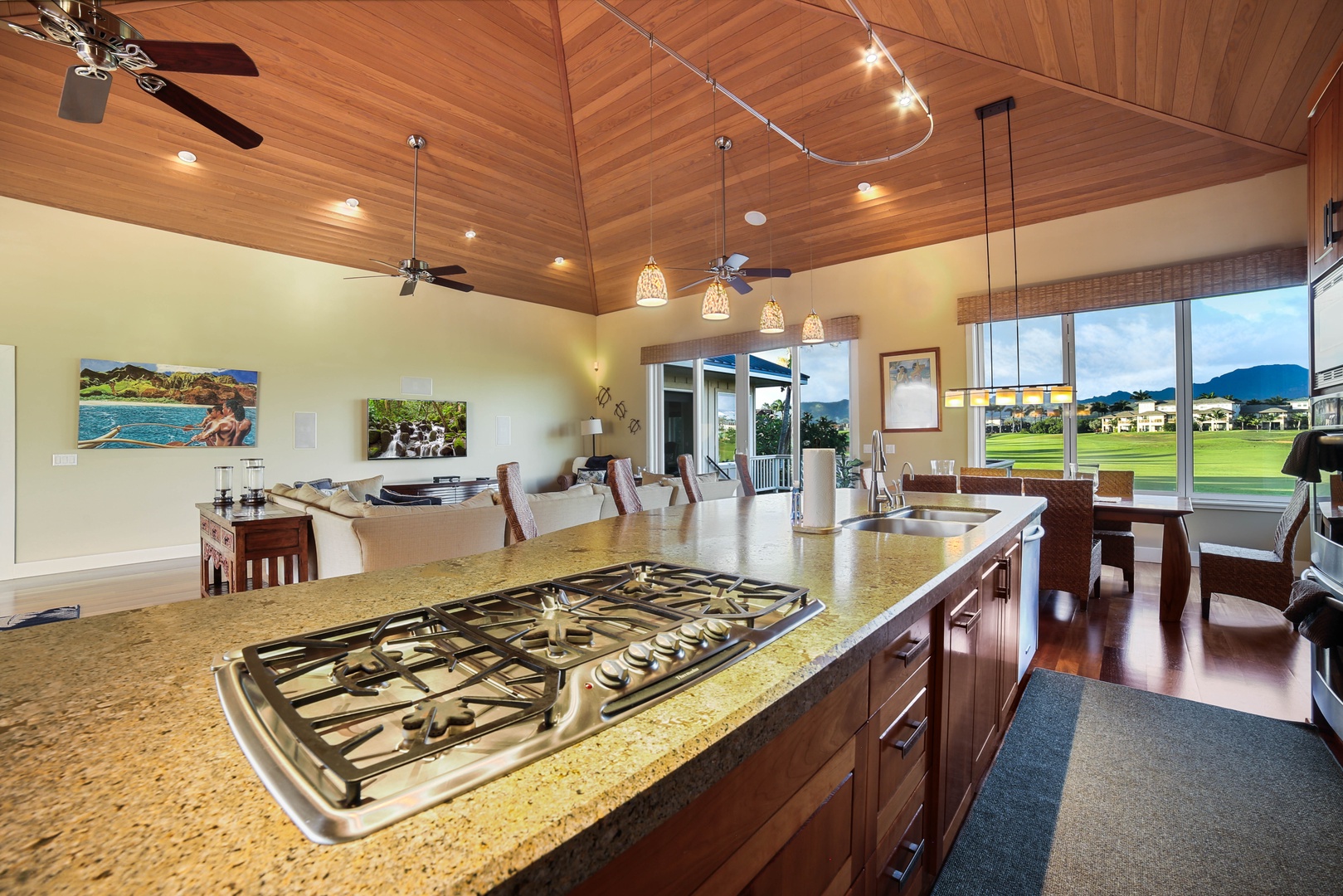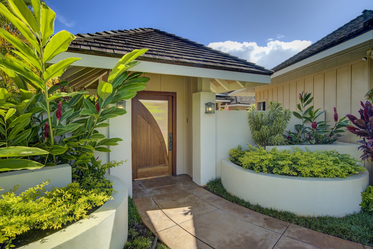 Named "Heavenly Breezes" for a reason, Poipu Makani Lani is a 4-bedroom, 3.5-bathroom custom home that is perfectly perched on the Kiahuna Golf Course's first hole. This modern single-level home offers three luxury master suites and a guest suite creating ultimate privacy for everyone. With Air Conditioning, a pool, a hot tub, a luxury kitchen, and an enclosed private lanai, Poipu Makani Lani is sure to enhance your Kaua’i experience.