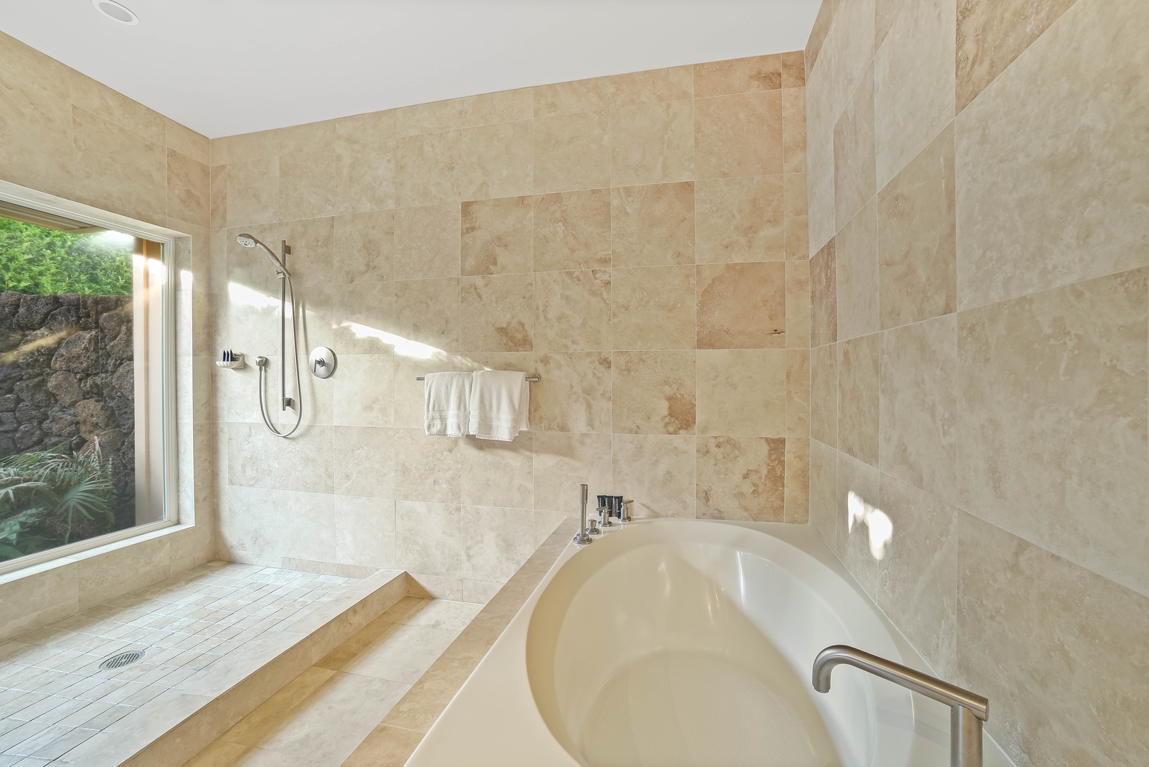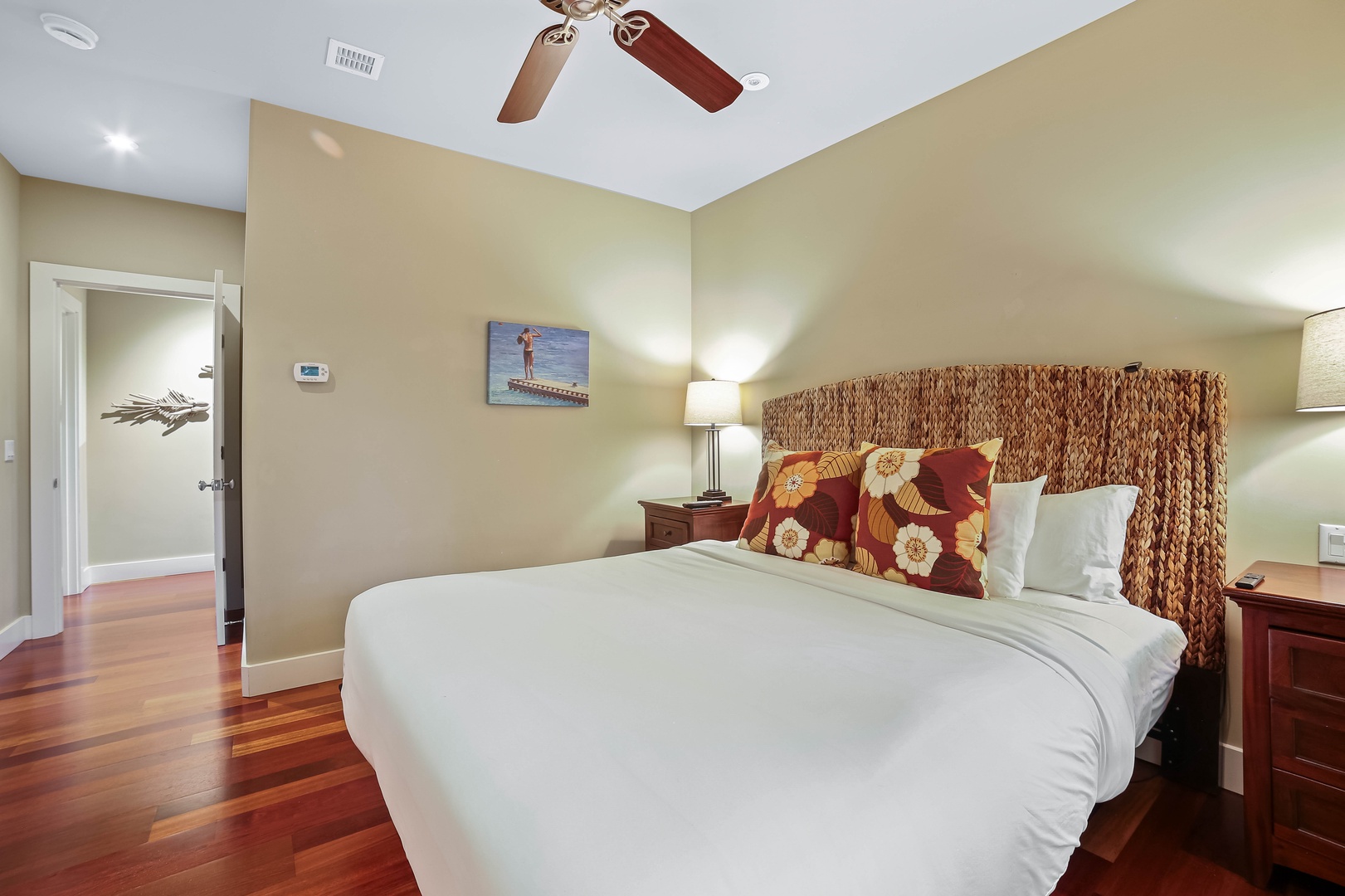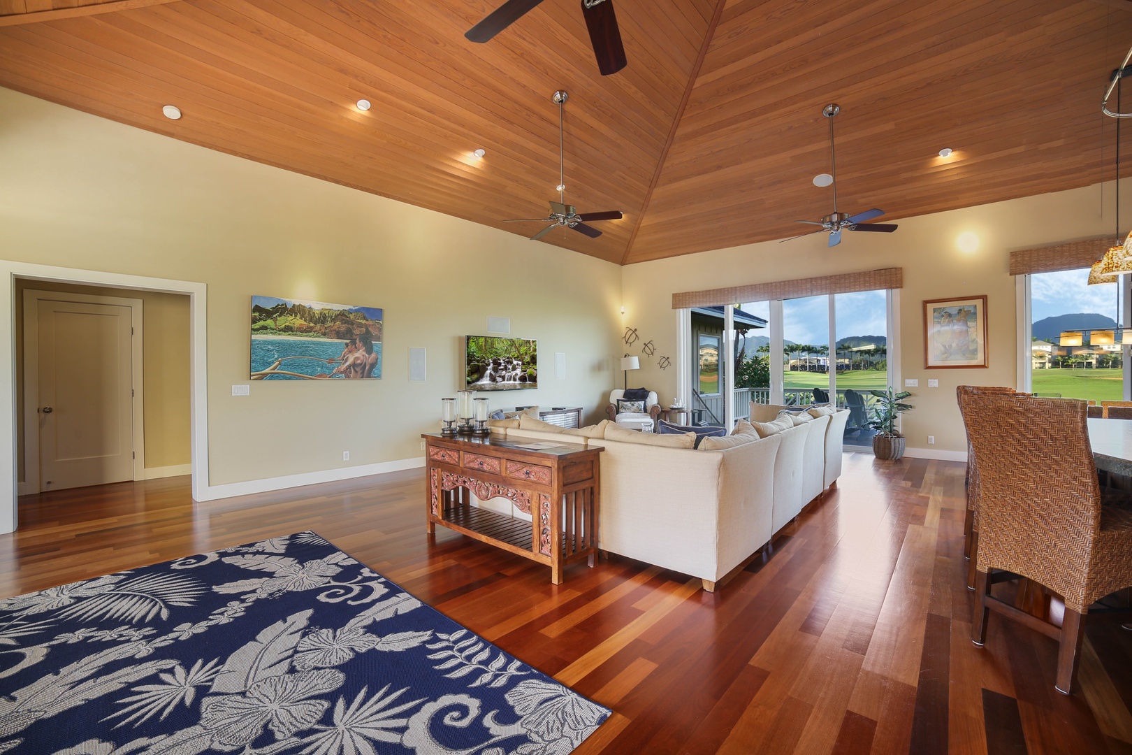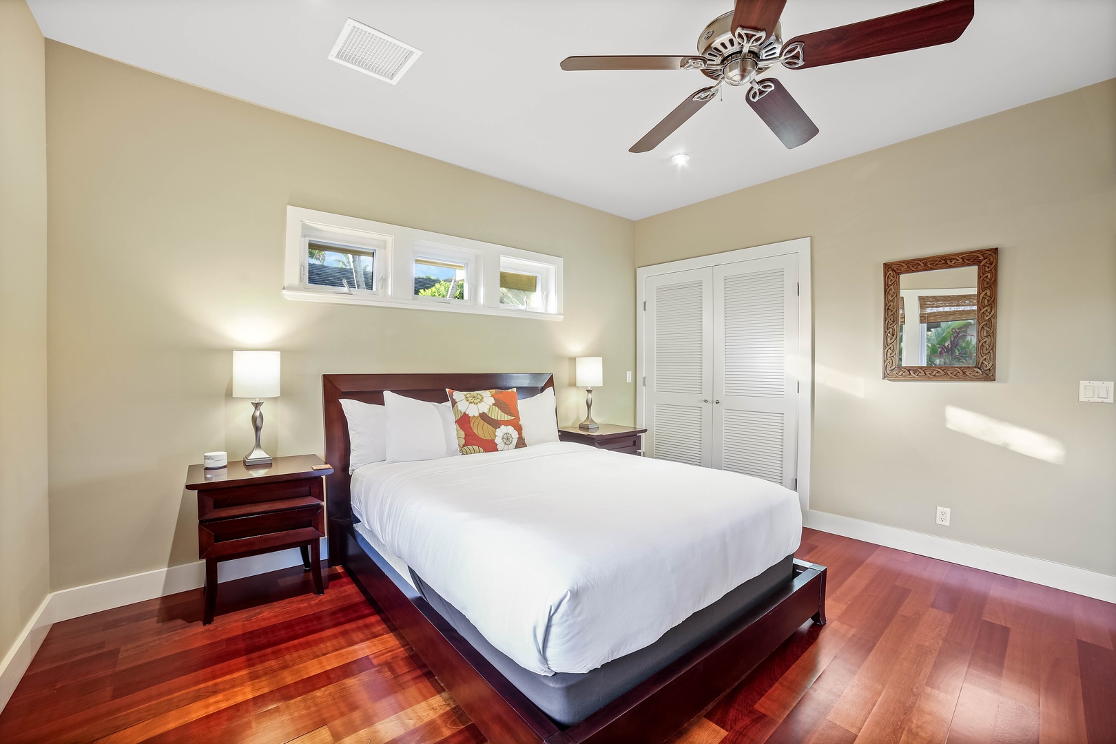 Named "Heavenly Breezes" for a reason, Poipu Makani Lani is a 4-bedroom, 3.5-bathroom custom home that is perfectly perched on the Kiahuna Golf Course's first hole. This modern single-level home offers three luxury master suites and a guest suite creating ultimate privacy for everyone. With Air Conditioning, a pool, a hot tub, a luxury kitchen, and an enclosed private lanai, Poipu Makani Lani is sure to enhance your Kaua’i experience.