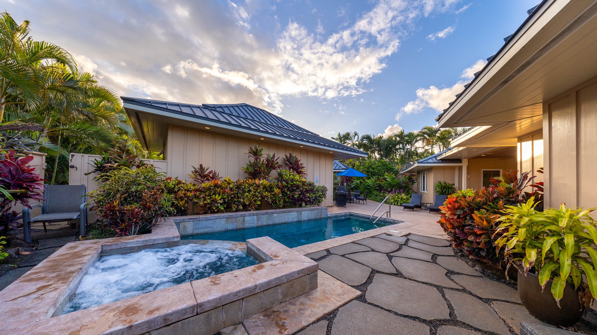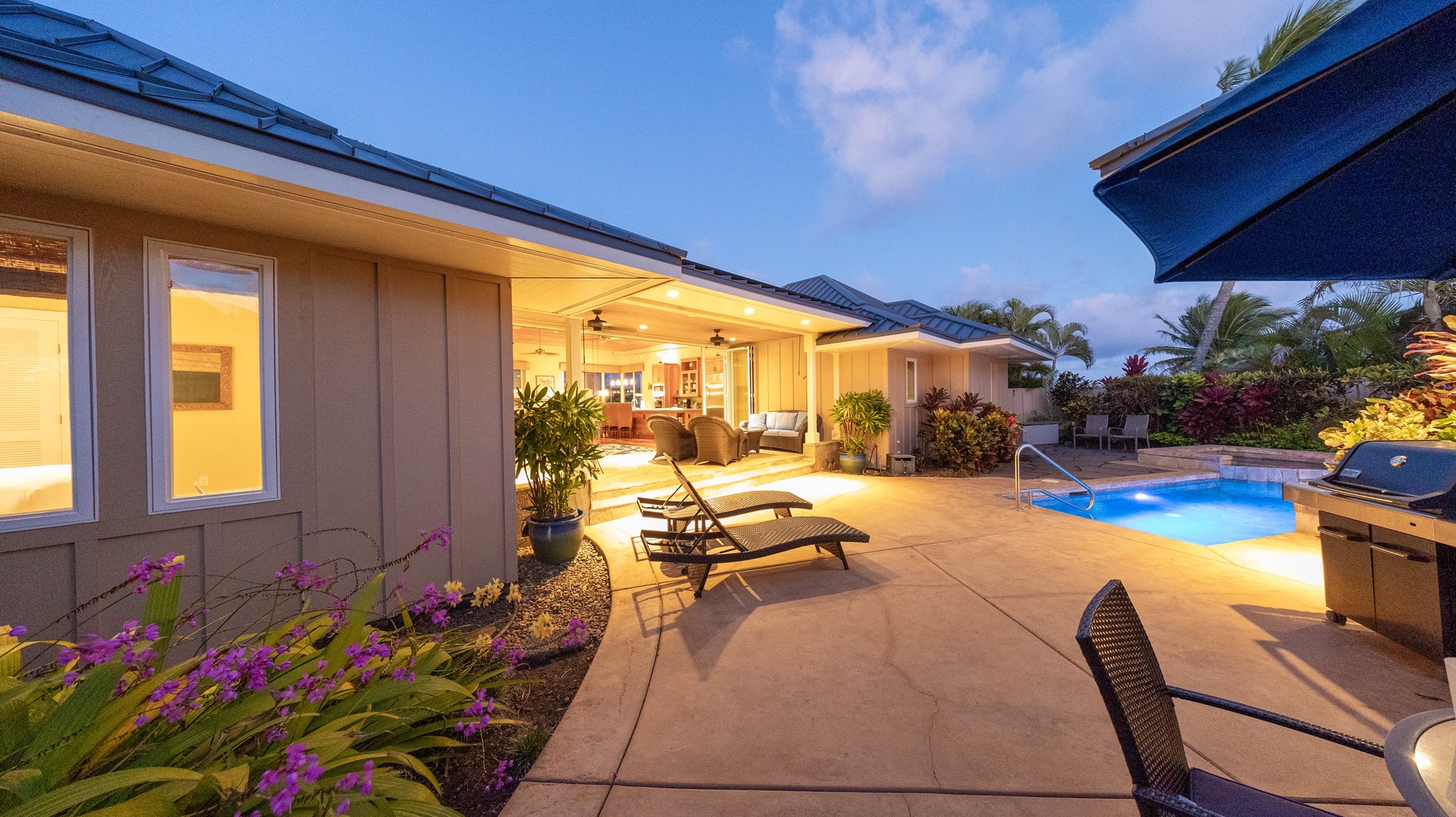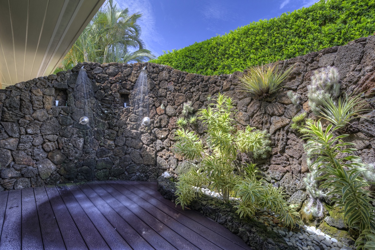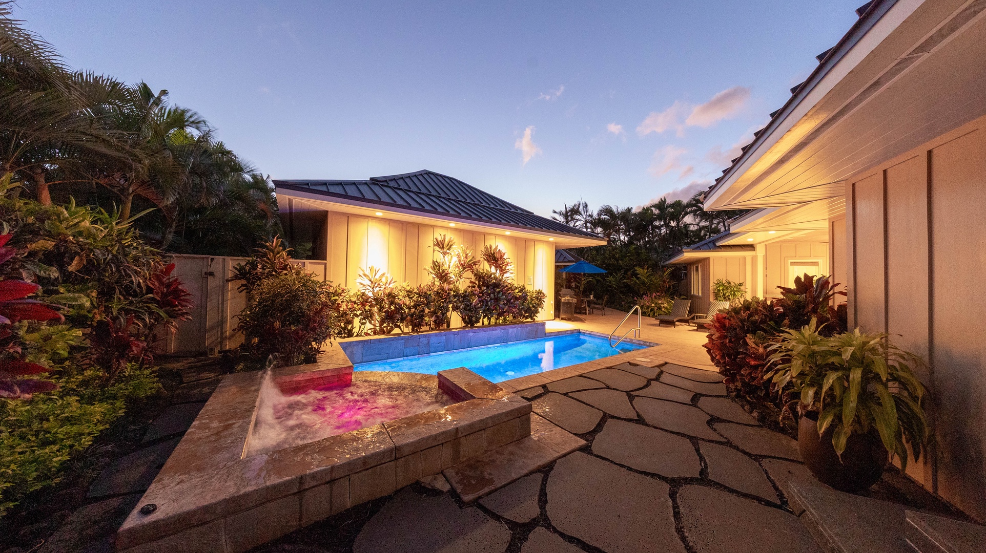 You’ll find quality design throughout the home with custom cabinetry, granite counters, high-end appliances, and wood flooring. With two lava rock outdoor showers, tall ceilings, and a covered lanai for indoor/outdoor living, this home is an entertainer's dream property! The hot tub is a perfect place to relax after a day of adventuring the garden island!