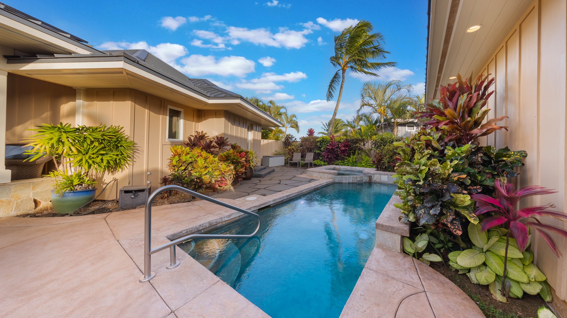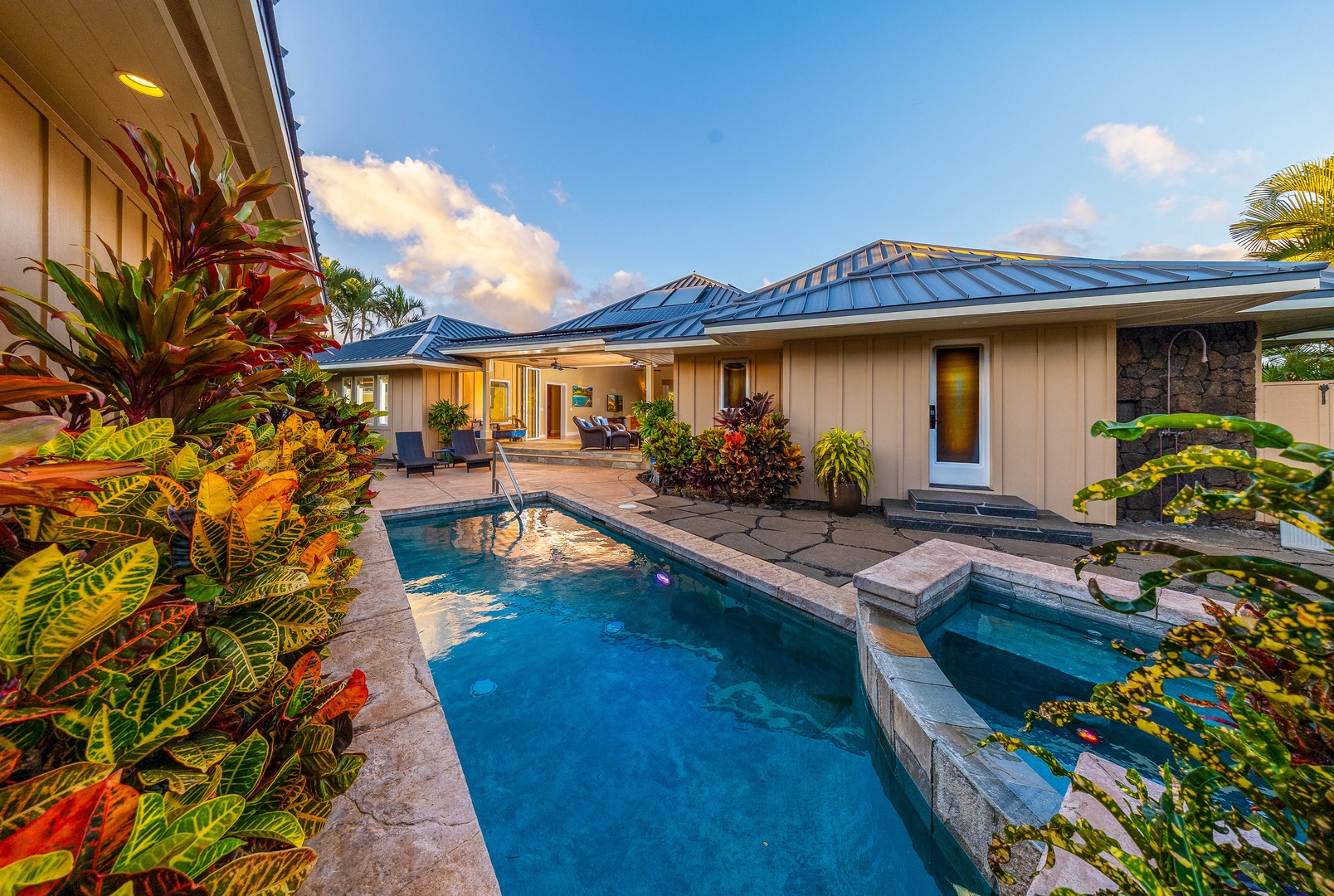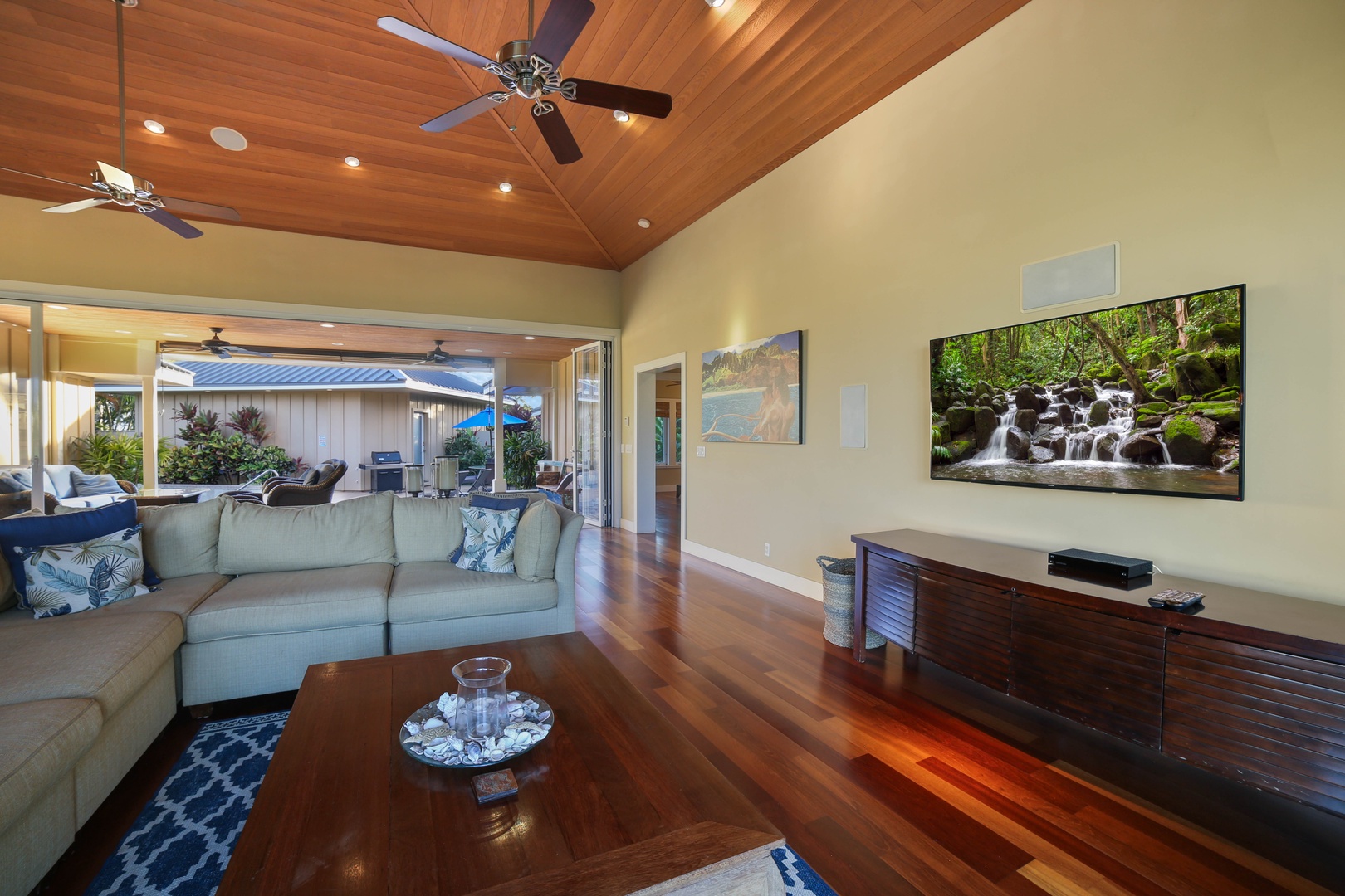 You’ll find quality design throughout the home with custom cabinetry, granite counters, high-end appliances, and wood flooring. With two lava rock outdoor showers, tall ceilings, and a covered lanai for indoor/outdoor living, this home is an entertainer's dream property! The hot tub is a perfect place to relax after a day of adventuring the garden island!