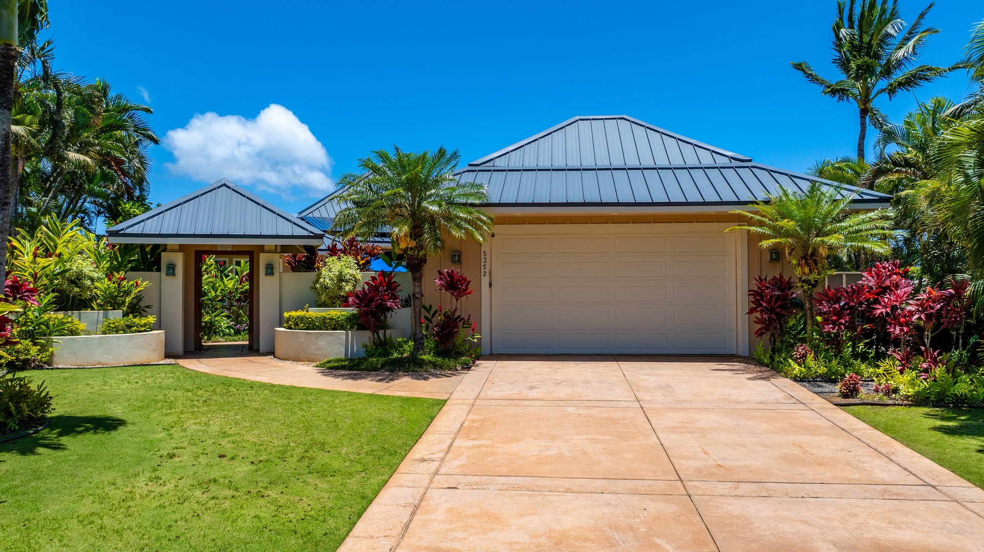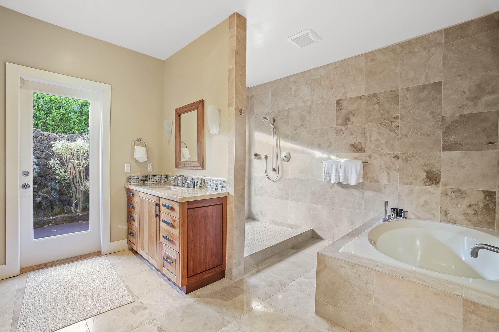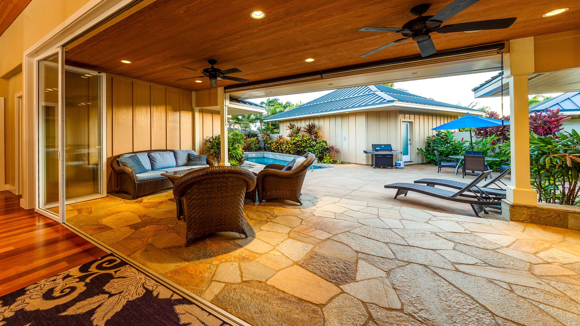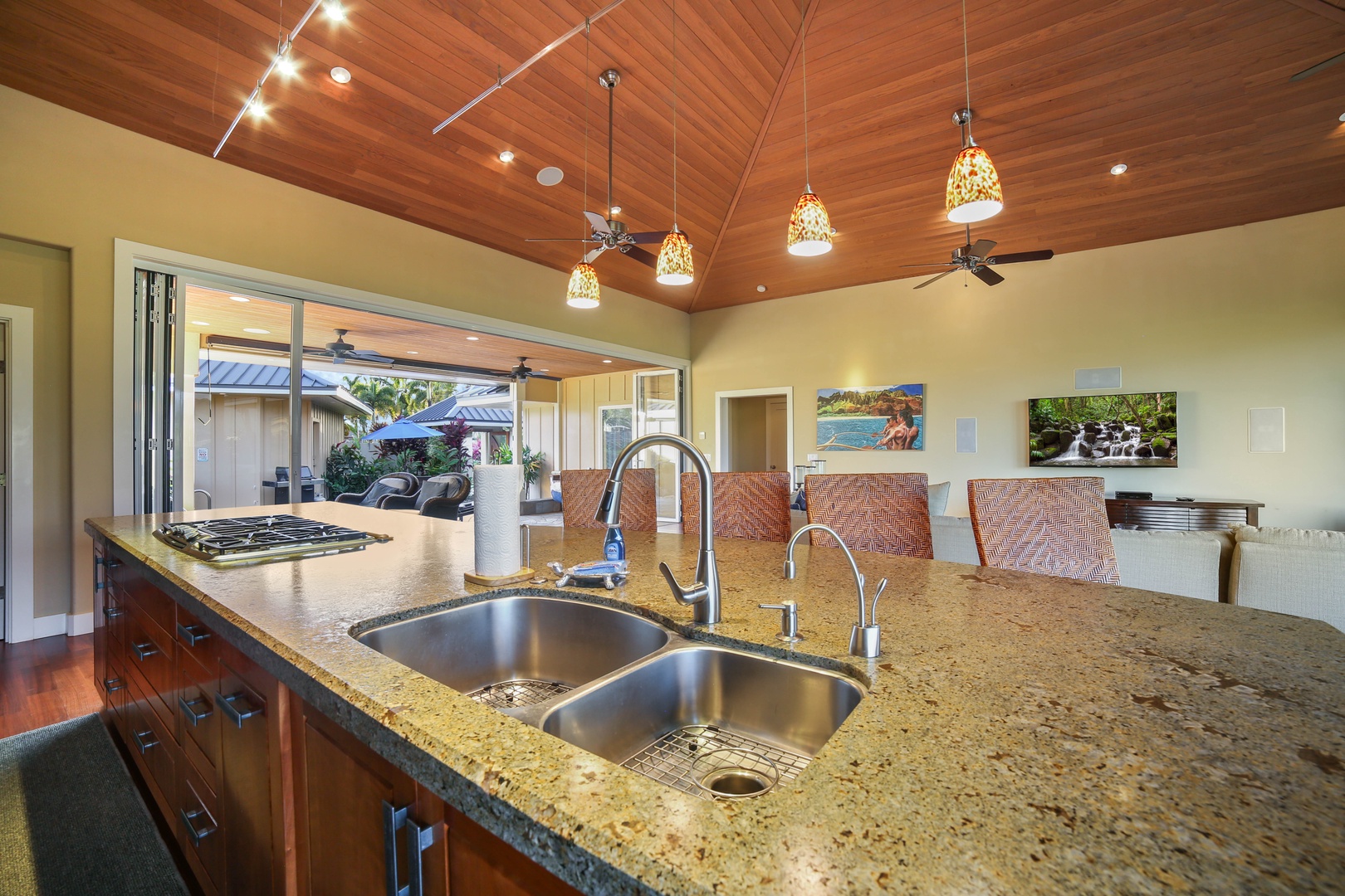 You’ll find quality design throughout the home with custom cabinetry, granite counters, high-end appliances, and wood flooring. With two lava rock outdoor showers, tall ceilings, and a covered lanai for indoor/outdoor living, this home is an entertainer's dream property! The hot tub is a perfect place to relax after a day of adventuring the garden island!