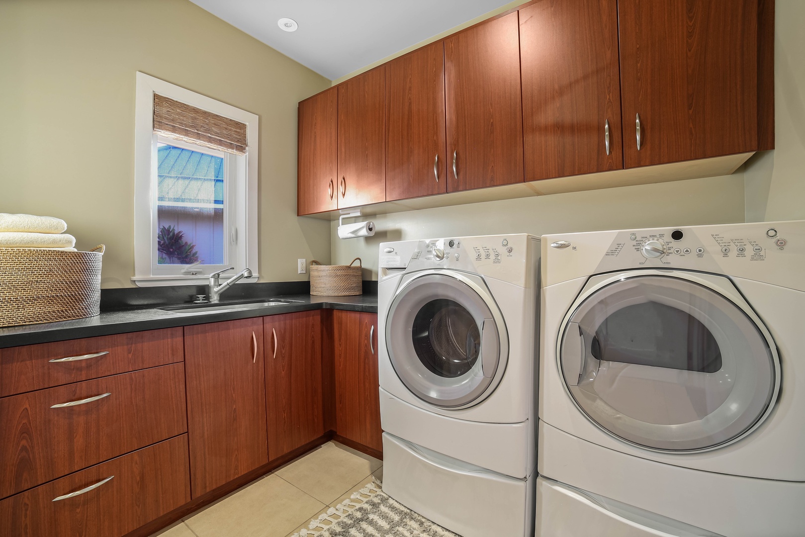 Full size washer and dryer. Kauai Exclusive also provides scent free laundry detergent during your stay