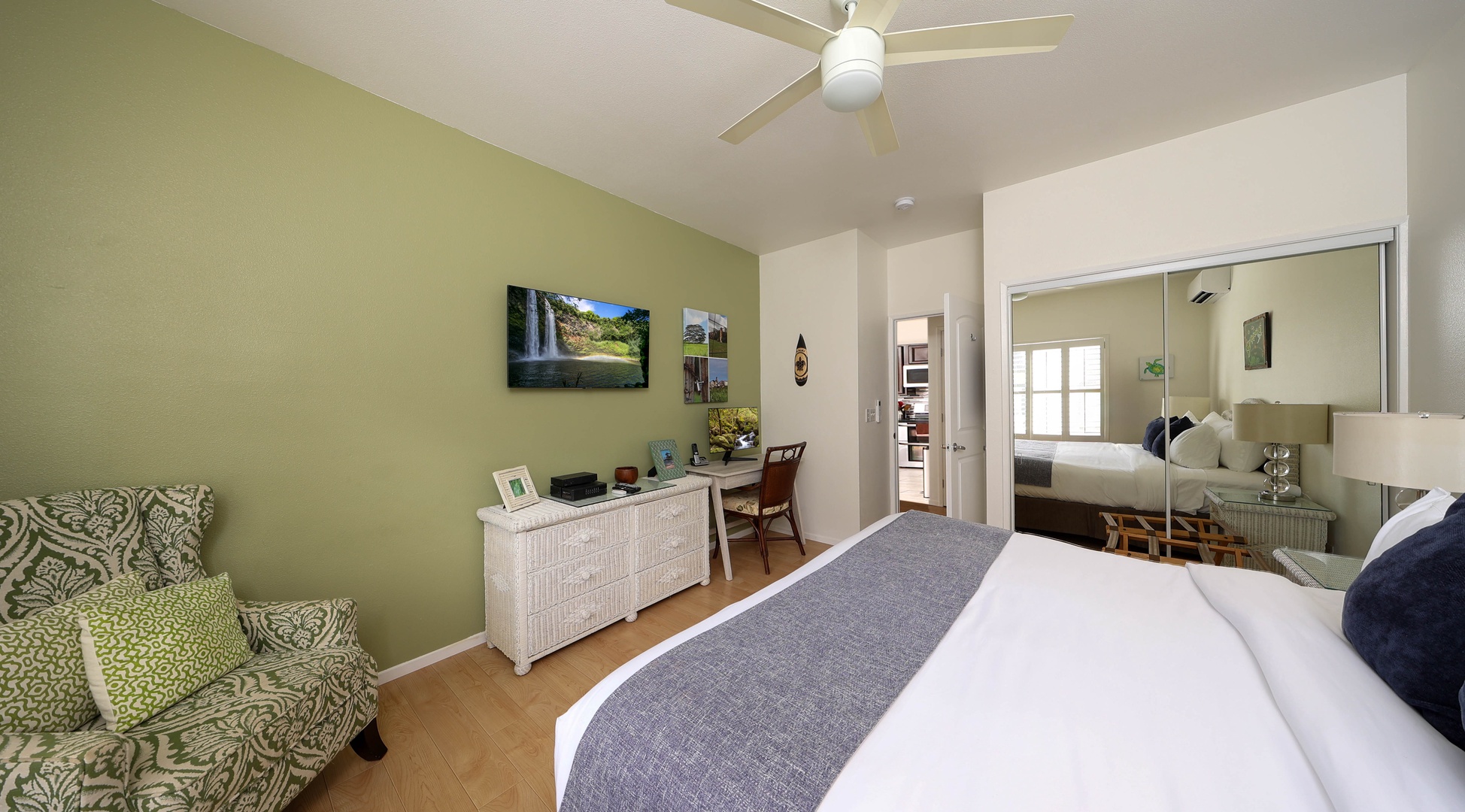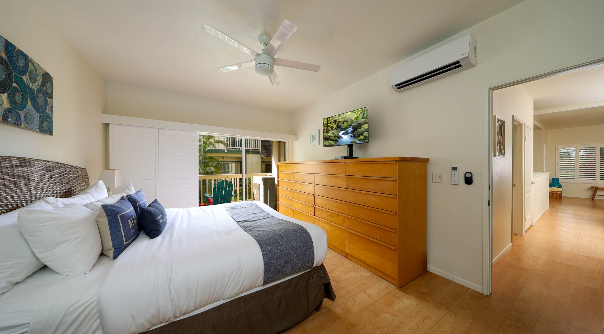 Primary Bedroom with AC, Ceiling Fan and HDTV