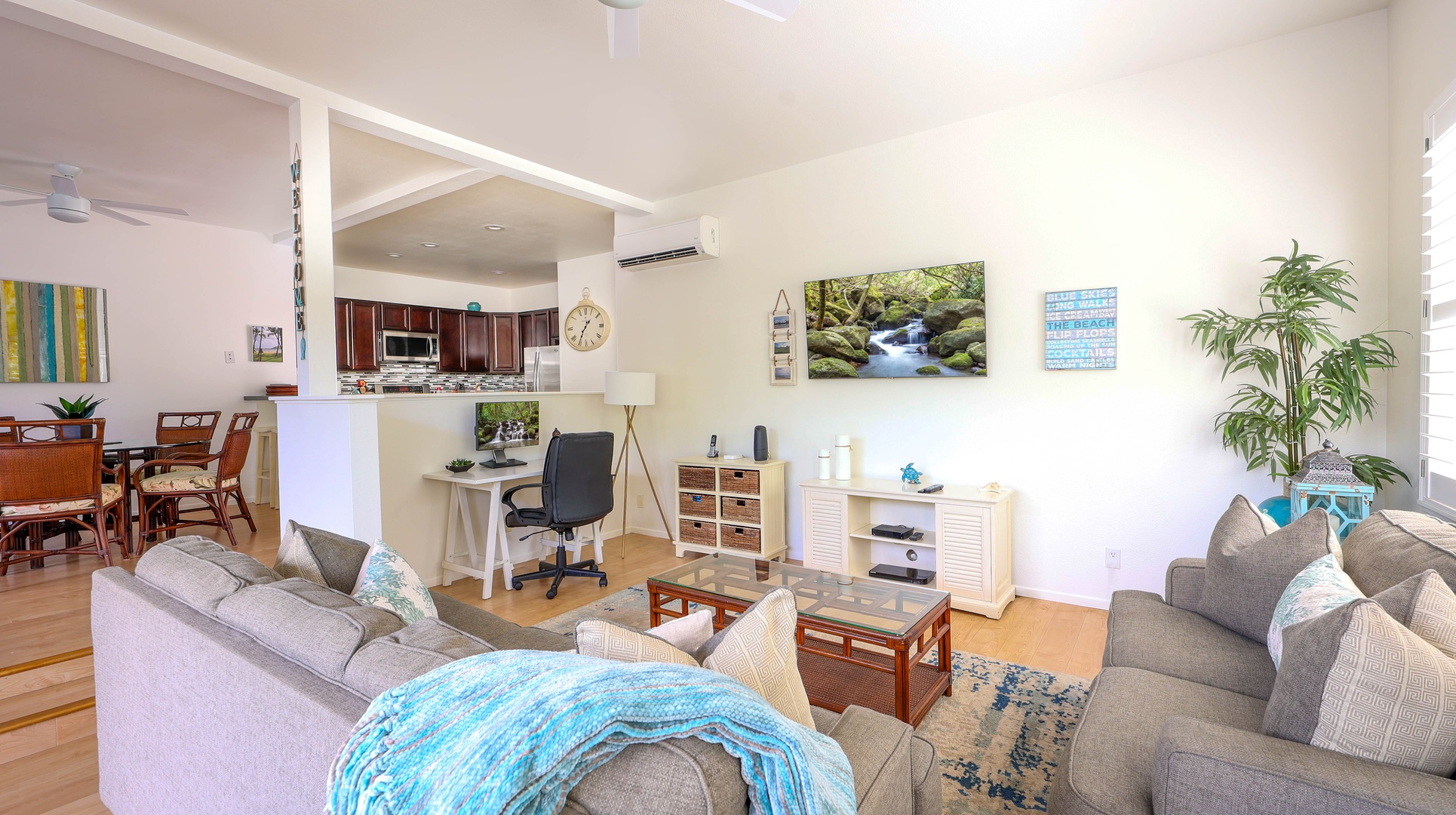 Regency at Poipu Kai 114 is an air conditioned, ground floor suite located just steps to the pool. This 2-bedroom, 2-bath suite is great families and walking distance to the beach. This stunning condo has been upgraded throughout and is one of the few air-conditioned suites at the resort.