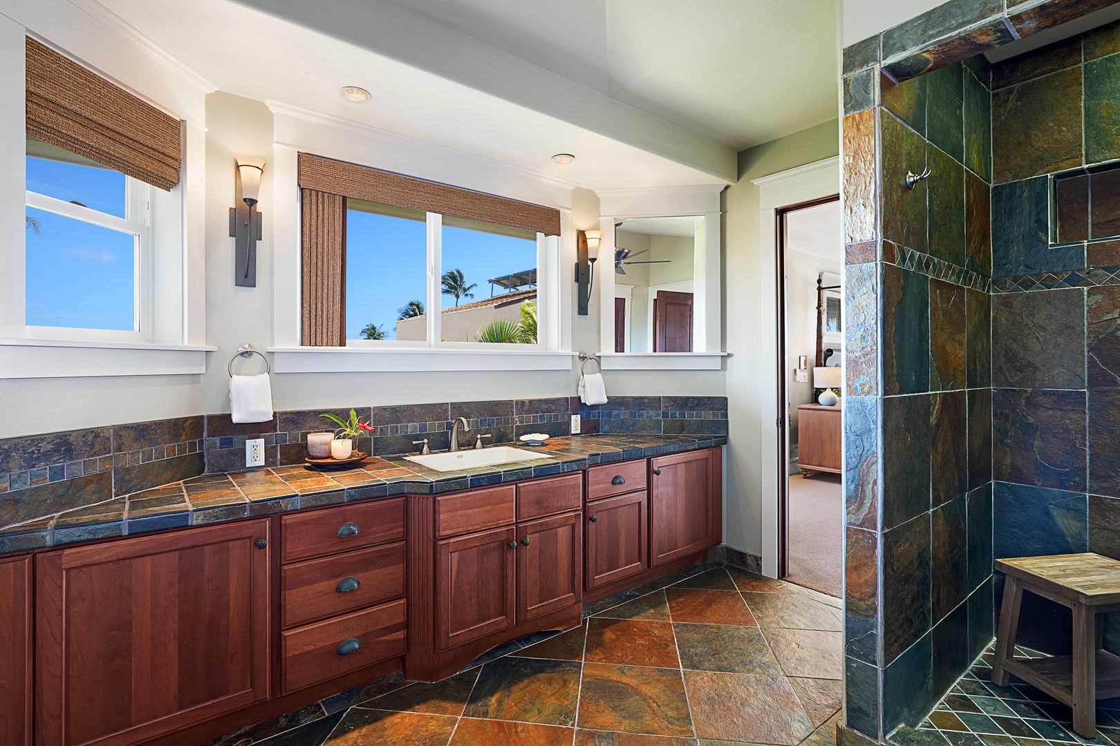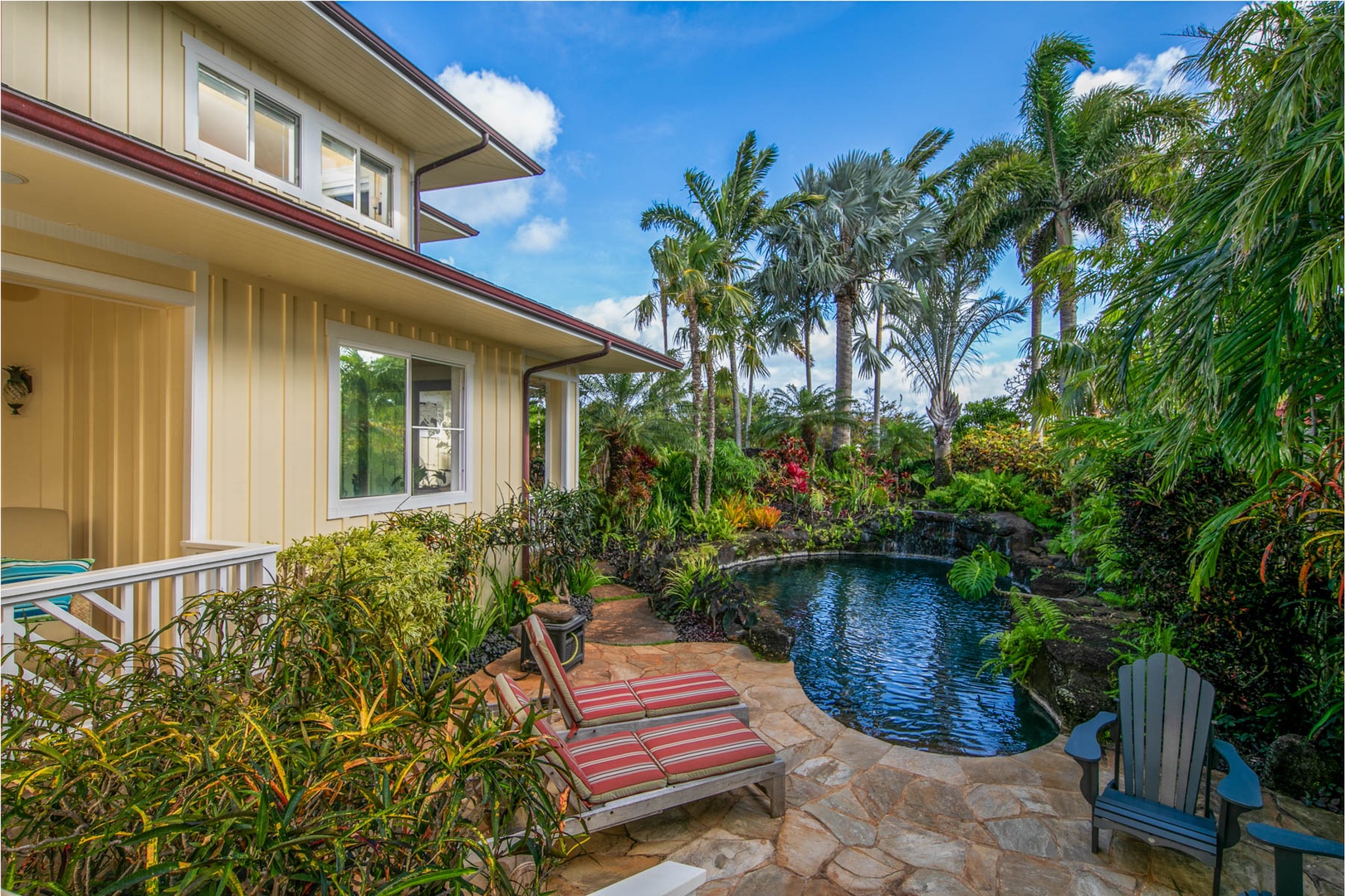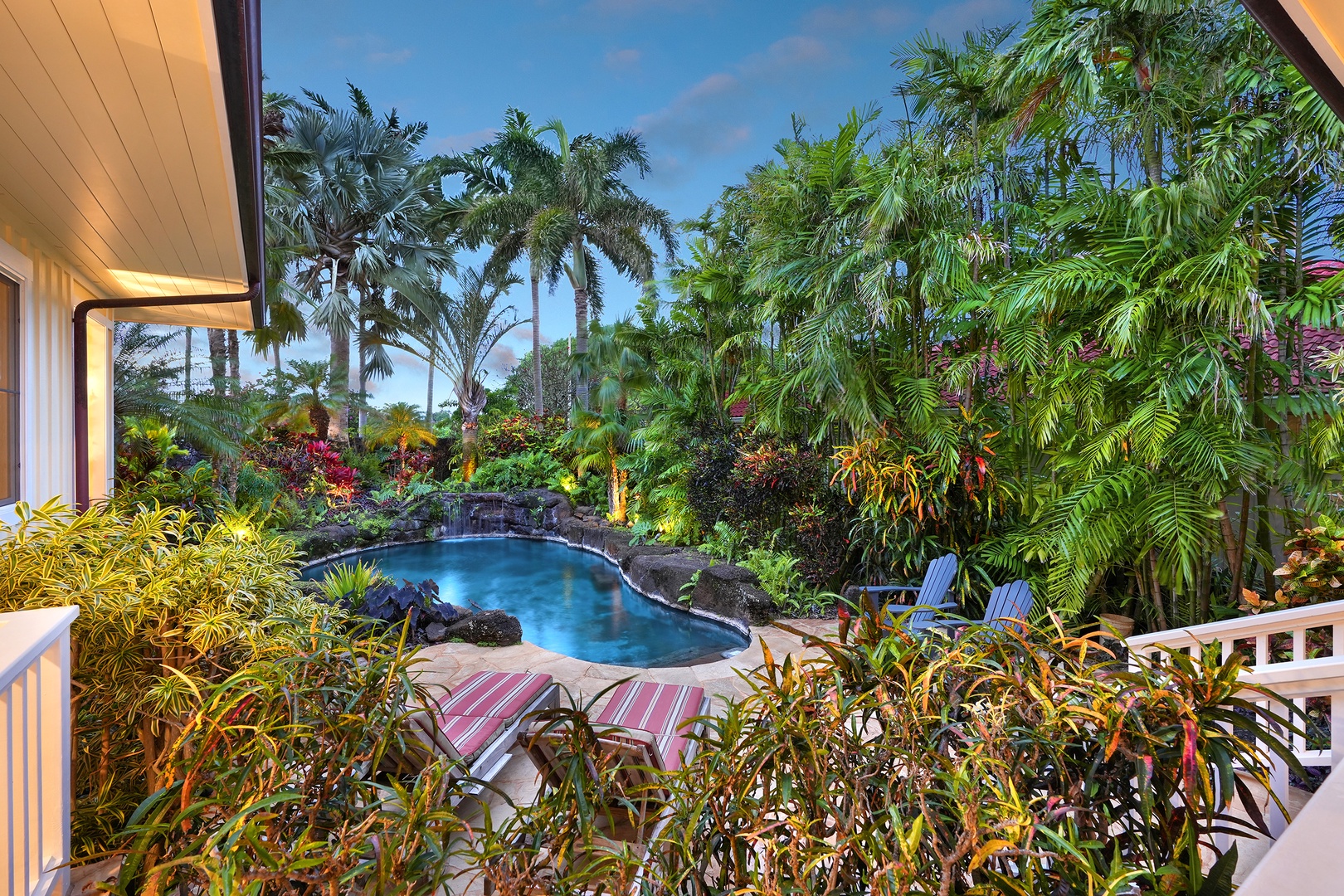 Relax, refresh, and renew. Dive into the crystal-clear waters of your own private saltwater pool, where you can bask in the Hawaiian sun or take a refreshing dip whenever the mood suits. With the sun kissing the horizon, enjoy the soothing sounds of the poolside waterfall as you gather around for an evening of stargazing, forging memories that will last a lifetime.