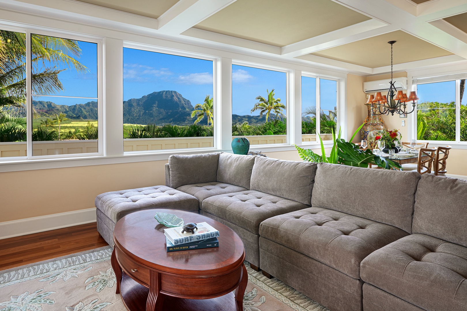 Set against the backdrop of the majestic Ha’upu Mountain Range, your eyes will be treated to a symphony of colors as the sun sets against the peaks, casting a warm glow across the landscape. Panoramic views ranging from the cliffs at Shipwrecks to the shores of Poipu paint a breathtaking picture. You'll be captivated by the ever-changing canvas of nature only experienced from your doorstep.