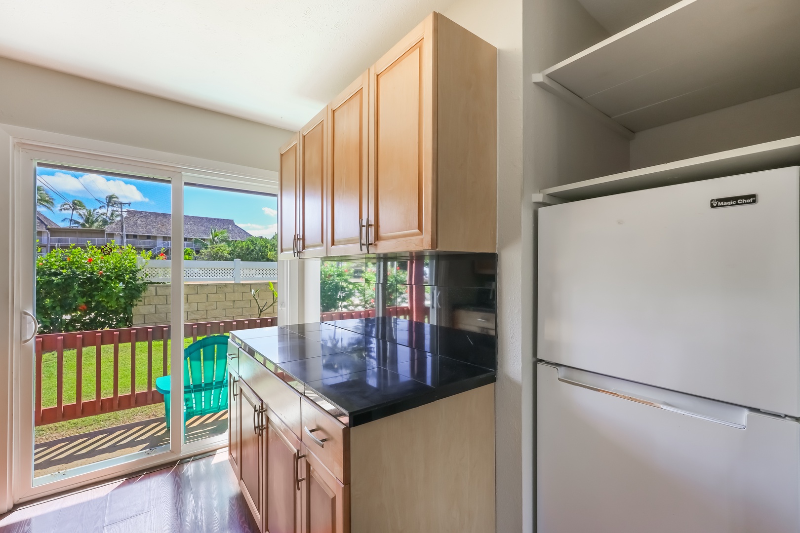 From morning coffee, to dinner at home- enjoy a fully equipped kitchen, brand new dishwasher and private lanai access