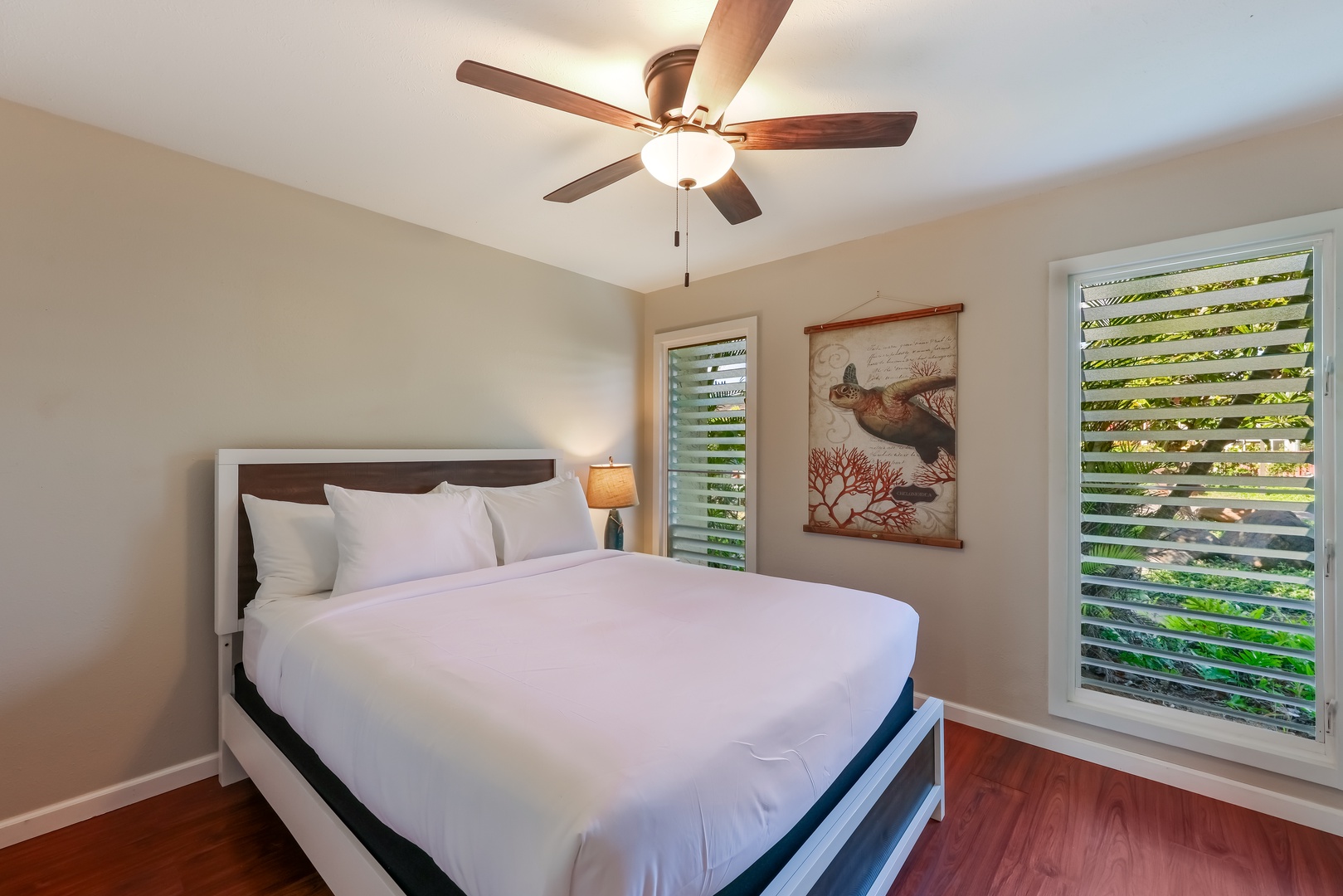 Cozy queen bed, modern Hawaiian style- your breezy Kapa'a escape