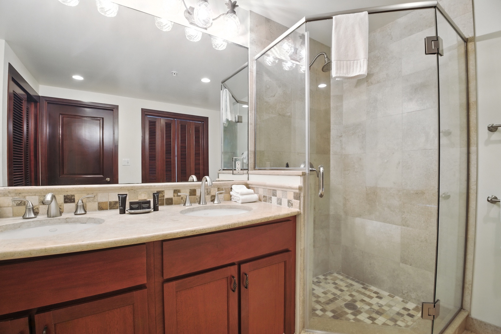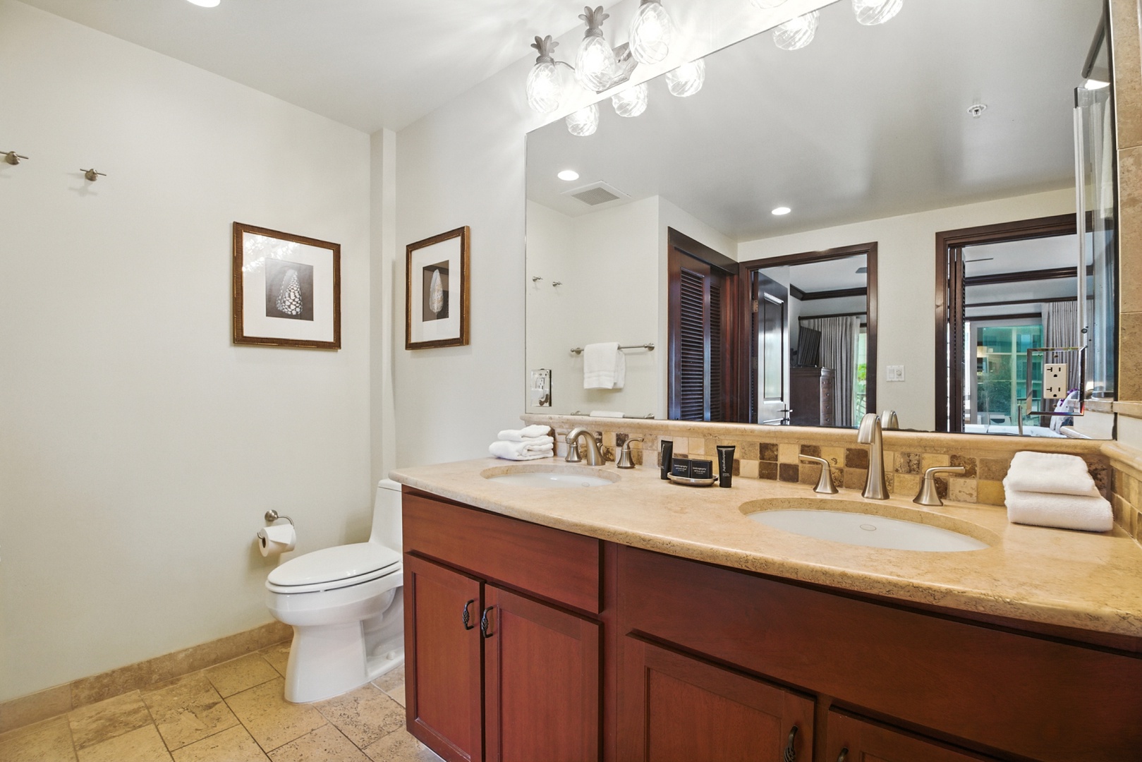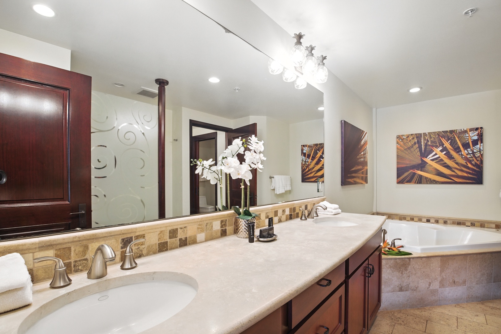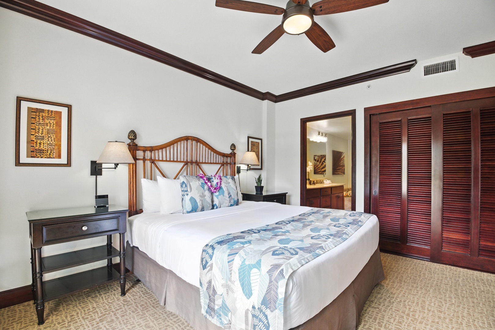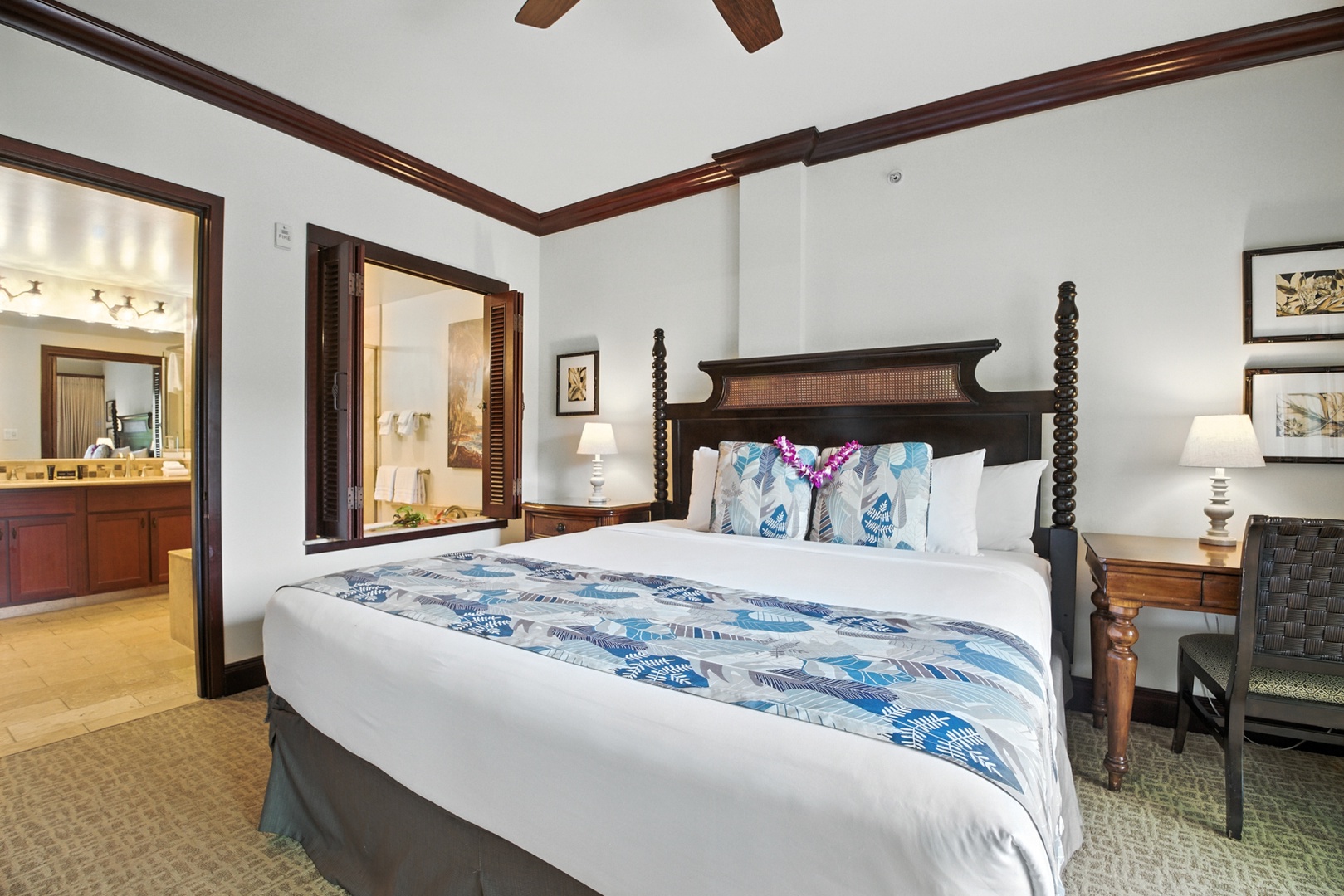 This two-bedroom, three-bath suite features two King beds and a sleeper sofa, easily accommodating up to six people. With impressive interior views of the cascading tropical pool, you can also enjoy fresh sea breezes and sunrises from your private lanai.