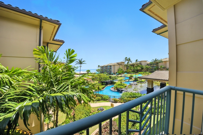 Private lanai retreat overlooking the sparkling resort pool & lazy river