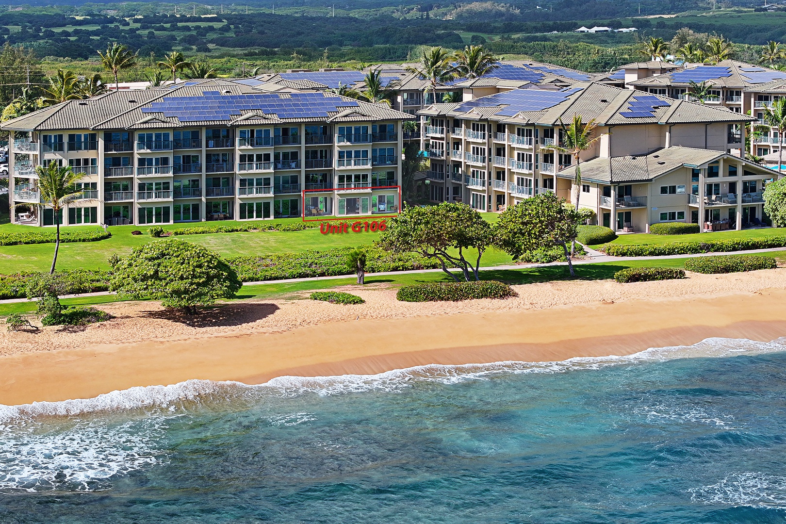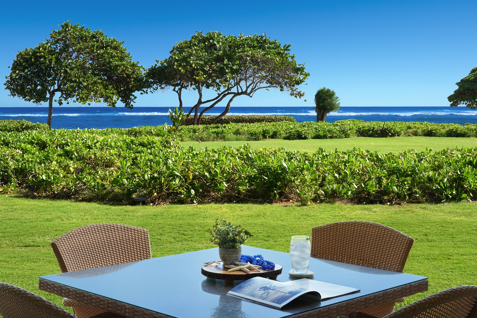 OCEAN FRONT! This stunning ground-floor two bedroom, three-bath suite that is one of only three East facing units that is just steps from the beach at top ranked Waipouli Beach Resort and Spa on the island of Kauai. Enjoy spectacular sunrises from the lanai while enjoying the tranquility the quiet side of the resort has to offer.